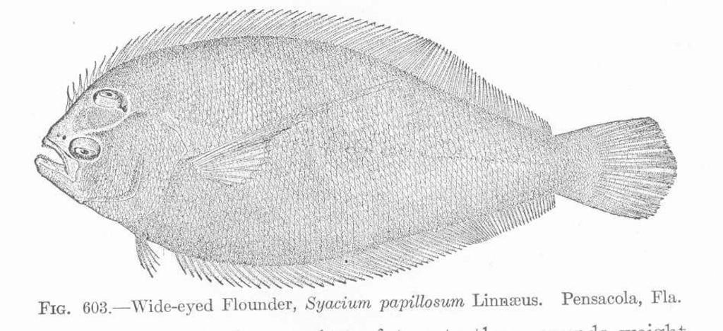 Keywords: FMIB 52172 Wide-eyed Flounder, Syacium papillosum Linnaeus Pensacola, Fla.jpeg Wide-eyed Flounder Syacium papillosum Linnaeus Pensacola Fla Subject Flatfishes Tag Fish 1907 Cite book Fishes Jordan David Starr New York City NY Henry Holt and Company 1907 Fig 603 Creator David Starr Jordan PD-UWASH-FMIB Institution University of Washington FMIB-source accession number 52172 Images from the Freshwater and Marine Image Bank to check David Starr Jordan Syacium papillosum |