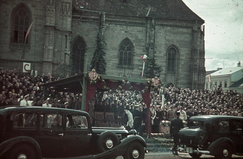 | Keywords: Fő tér a magyar csapatok bevonulása idején, a Szent Mihály-templom előtti emelvénynél Horthy Miklós. A felvétel 1940. szeptember 11-én készült. Fortepan 92490.jpg hu Fő tér a magyar csapatok bevonulása idején a Szent Mihály-templom előtti emelvénynél Horthy Miklós A felvétel 1940 szeptember 11-én készült Location Romania Transylvania Cluj-Napoca Tags territorial gain national emblem colorful Title Fő tér a magyar csapatok bevonulása idején a Szent Mihály-templom előtti emelvénynél Horthy Miklós A felvétel 1940 szeptember 11-én készült http //www fortepan hu/_photo/download/fortepan_92490 jpg 1940 Fortepan 92490 http //www fortepan hu/_photo/download/fortepan_92490 jpg http //www fortepan hu/ lang en img 92490 Unknown The release at fortepan hu is CC-BY-SA-3 0 As the photographer is unknown or pseudonymous and the photograph is Age 1940 01 01 years old it is considered public domain both in the country of publication Hungary and the USA where Wikimedia Commons is hosted See Fortepan HU for more information on related uploads PD-anon-70-EU PD-anon-auto-1996 1940 Hungary DEFAULTSORT Fortepan 092490 1940 photographs Colour photographs from Fortepan Images uploaded by Fæ Northern Transylvania Second Vienna Award |