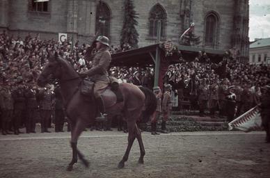 | Keywords: Fő tér a magyar csapatok bevonulása idején, a Szent Mihály-templom előtti emelvénynél Horthy Miklós. A felvétel 1940. szeptember 11-én készült. Fortepan 92494.jpg hu Fő tér a magyar csapatok bevonulása idején a Szent Mihály-templom előtti emelvénynél Horthy Miklós A felvétel 1940 szeptember 11-én készült Location Romania Transylvania Cluj-Napoca Tags territorial gain national emblem colorful Title Fő tér a magyar csapatok bevonulása idején a Szent Mihály-templom előtti emelvénynél Horthy Miklós A felvétel 1940 szeptember 11-én készült http //www fortepan hu/_photo/download/fortepan_92494 jpg 1940 Fortepan 92494 http //www fortepan hu/_photo/download/fortepan_92494 jpg http //www fortepan hu/ lang en img 92494 Unknown The release at fortepan hu is CC-BY-SA-3 0 As the photographer is unknown or pseudonymous and the photograph is Age 1940 01 01 years old it is considered public domain both in the country of publication Hungary and the USA where Wikimedia Commons is hosted See Fortepan HU for more information on related uploads PD-anon-70-EU PD-anon-auto-1996 1940 Hungary DEFAULTSORT Fortepan 092494 1940 photographs Colour photographs from Fortepan Images uploaded by Fæ Northern Transylvania Second Vienna Award |