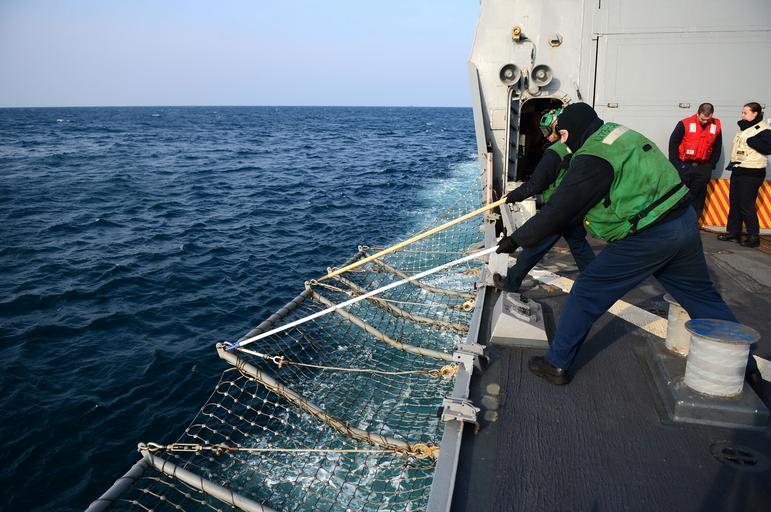 Keywords: Foal Eagle 2015 150308-N-UG232-317.jpg en 150308-N-UG232-317 - WATERS TO THE EAST OF THE KOREAN PENINSULA March 8 2015 Aviation Structural Mechanic 2nd Class Jason Kinker and Aviation Structural Mechanic 2nd Class Joshua Savage lower flight deck safety nets in preparation to launch a MH-60 Seahawk helicopter aboard USS Lassen DDG 82 during exercise Foal Eagle 2015 Foal Eagle is a series of annual training events that are defense-oriented and designed to increase readiness and maintain stability on the Korean Peninsula while strengthening the ROK-U S alliance and promoting regional peace and stability of the Indo-Asian-Pacific region U S Navy Photo by Mass Communication Specialist 1st Class Martin Wright/Released 2015-03-08 Petty Officer 1st Class Martin Wright https //www dvidshub net/image/1806144 150308-N-UG232-317 2015-03-10 00 04 USS LASSEN WATERS TO THE EAST OF THE KOREAN PENINSULA AT SEA PD-USGov-Military-Navy MH-60R Seahawk USS Lassen DDG-82 Images from DoD uploaded by Fæ Foal Eagle 2015 |