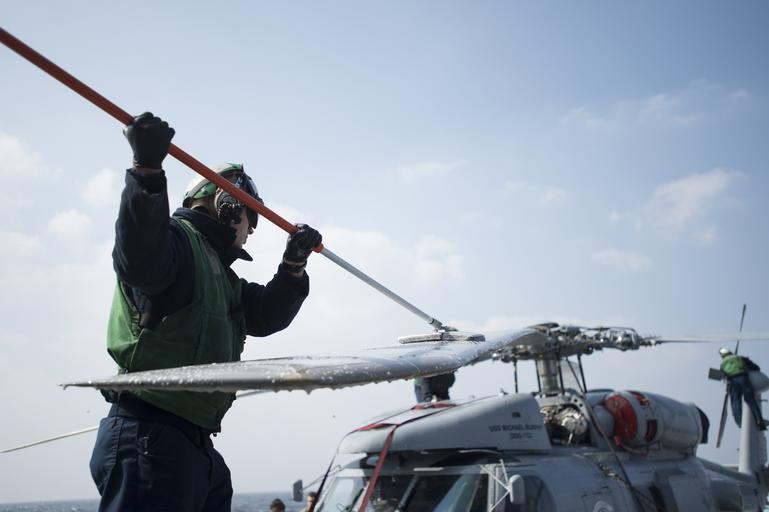 Keywords: Foal Eagle 2015 150312-N-SY784-095.jpg en 150312-N-SY784-095 WATERS TO THE WEST OF THE KOREAN PENINSULA Aviation Electrician's Mate 2nd Class Ryan Pittman washes the blade of a SH-60 Seahawk helicopter while underway aboard the Arleigh Burke-class guided-missile destroyer USS Michael Murphy during exercise Foal Eagle 2015 Murphy is on patrol in the 7th Fleet area of operation supporting security and stability in the Indo-Asia-Pacific region Foal Eagle is a series of annual training events that are defense-oriented and designed to increase readiness and maintain stability on the Korean Peninsula while strengthening the ROK-U S alliance and promoting regional peace and stability of the Indo-Asia-Pacific region 2015-03-12 March 12 2015 https //www dvidshub net/image/1834431 150312-N-SY784-095 2015-03-24 15 50 USS MICHAEL MURPHY AT SEA PD-USGov-Military-Navy SH-60 Seahawk Images from DoD uploaded by Fæ Foal Eagle 2015 |