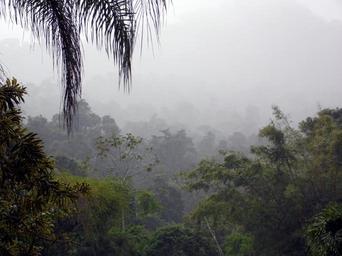 Keywords: fog jungle forest sawmill clouds trees green nature