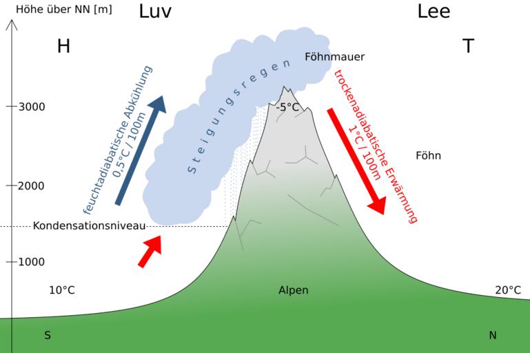 Keywords: Föhn.svg de Schematische Darstellung der Entstehung des Föhns 2016-02-17 own Slbch Cc-zero Föhn wind Geographic diagrams