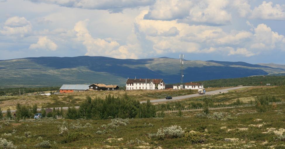 Keywords: Fokstugu.jpg en Fokstugu mountain lodge Dovre Norway Its history as a mountain lodge dates back to the 17th Century; houses rebuilt after a fire in 1718 Own Jensens 2008-07-28 E6 Oppland Dovre mountain range Fokstugu fjellstue