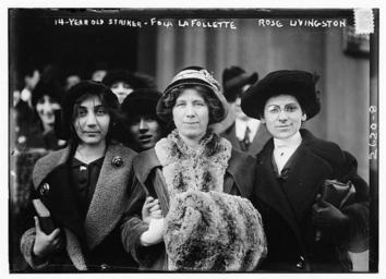 Keywords: Fola La Follette, Rose Livingston and unidentified striker.jpg en Photograph shows suffrage and labor activist Flora Dodge Fola La Follette 1882-1970 social reformer and missionary Rose Livingston and a young striker during a garment strike in New York City in 1913 Source Flickr Commons project 2011 1 negative glass 5 x 7 in or smaller LOC-image ggbain 12397 LC-DIG-ggbain-12397 http //loc gov/pictures/resource/ggbain 12397/ institution Library of Congress Prints Photographs Division D C 20540 USA http //hdl loc gov/loc pnp/pp print accession number Reproduction Number LC-DIG-ggbain-12397 digital file from original negative Call Number LC-B2- 2620-8 P P Title and date from data provided by the Bain News Service on the negative Forms part of George Grantham Bain Collection Library of Congress General information about the Bain Collection is available at http //hdl loc gov/loc pnp/pp ggbain Additional information about this photograph might be available through the Flickr Commons project at http //www flickr com/photos/library_of_congress/3065184717 undated Possibly 1913 garment workers' strike http //query nytimes com/gst/abstract html res 940DEEDE133BE633A25752C3A9679C946296D6CF Bain News Service Photographer unknown Rights Advisory No known restrictions on publication PD-Bain Strikes in the United States Labour movement in the United States Fola LaFollette Feminists from the United States Chinchilla clothing Muffs Black and white photographs of women Black and white photographs of groups New York City in the 1910s Women of the United States Strikes in the 1910s Strikes by textile workers Black and white photographs Garment workers Female trade unionists |