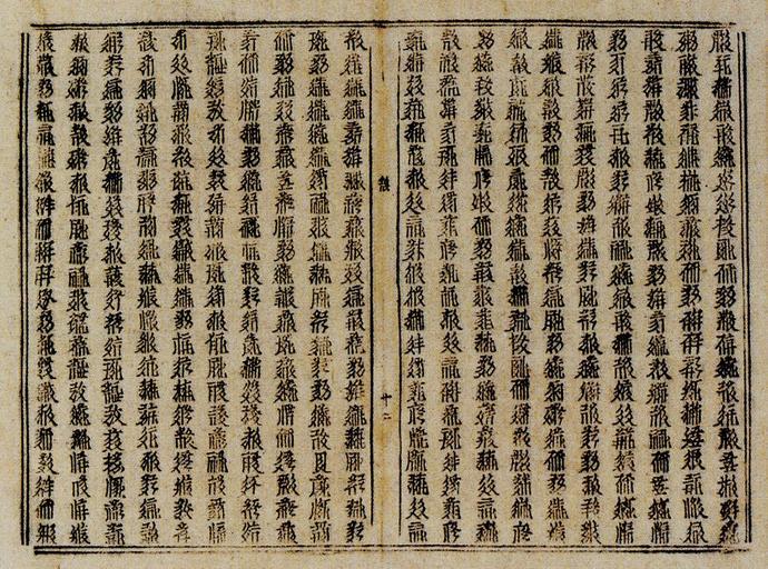Keywords: Folio from the Auspicious Tantra of All-Reaching Union.jpg en Auspicious Tantra of All-Reaching Union Supplementary Explanations volume 3 folio 12 Folio of a 12th century Tangut translation of a Tantra printed using wooden movable type from the Baisigou Square Pagoda in Ningxia China 2011-09-26 Ningxia Institute of Cultural Relics and Archaeology Bàisìgōu Xīxià Fāngtǎ 寺沟西夏方塔 The Western Xia Square Pagoda at Baisigou Beijing Wenwu Chubanshe 2005 Colur Plate XI no 2 Folio of a wooden typeset book in Tangut printed during the second half of the 12th century PD-old-100 Uploaded with UploadWizard Tangut printed texts |