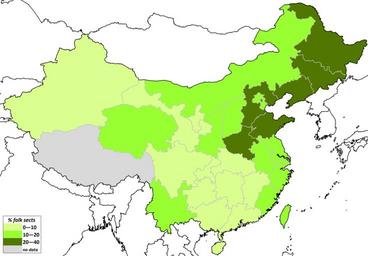 Keywords: Folk religious sects' influence by province of China (alternate).png Analysis of the diffusion of influence of the folk religious sects 民間宗教 mínjiān zōngjiào 民间教门 mínjiān jiàomén or 民间教派 mínjiān jiàopài and Confucian churches and jiaohua transformative teachings in China according to different sources including incomplete data on organised folk religions by province from the World Religion Database represented in a map by Harvard University; contemporary scholars' fieldwork describing the proliferation of Confucian churches in Shandong and other provinces; historical data of the membership of folk sects and Confucian churches in the Japanese-controlled state of Manchuria Harvard University https //worldmap harvard edu/data/geonode wrd_province_religion_qg0 World Religion Map based on data from the World Religion Database The studies of China's Regional Religious System find very high activity of popular religion and secret societies and low Buddhist presence in northern regions while very high Buddhist presence in the southeast http //chinadatacenter org/Files/201203201336113771 pdf source Integrated with Hebei Fieldwork by Thomas David Dubois see http //www bniao org/Asset/Source/bnBook_ID-1637_No-01 pdf The Sacred Village Social Change and Religious Life in Rural North China University of Hawaii 2005 testifies the dominance of folk religious sects specifically the Church of the Heaven and the Earth and the Church of the Highest Supreme since their energetic revival since the 1970s p 13 in the religious life of the counties of Hebei Religious life in rural Hebei is also characterised by a type of organisation called the benevolent churches and the folk sect known as Zailiism has returned active since the 1990s Henan Thomas Heberer Sabine Jakobi https //www uni-due de/oapol/wordpress/wp-content/uploads/Heberer-Jakobi_Henan-The-Model1 pdf Henan - The Model From Hegemonism to Fragmentism Portrait of the Political Culture of China's Most Populated Province Duisburg Working Papers on East Asian Studies May 2000 n 32 As explained in the paper Henan has been for centuries a hub of folk religious sects which constitute significant focuses of the religious life of the province p 7 Early examples include the Yellow Turbans huangjin a messianist movement of Daoist inspiration in the 2nd century and the Red Turbans hongjin a chiliastic movement awaiting the appearance of the Buddha Maitreya Milefo in the 14th century In recent centuries this province was a major focal point of the Sect of Heavenly Order tianlijiao the White Lotus-sect bailianhui the Nian-movement the Heavenly Bamboo-movement tianzhujiao the Society of Elder Brothers gelaohui the Green and Red Guild qinghongbang the Persistent Way yiguandao -movement the sect Great King of Red Heaven and the Society of the Great Sword dadaohui just to mention the most important ones Henan also has a strong Confucian orientation p 5 Northeast China According to official records by the then-government the Universal Church of the Way and its Virtue or Morality Society had 8 million members in the state of Manchuria or northeast China making up about 25 of the total population of the area which then also comprehended the easternmost end of contemporary Inner Mongolia see http //assr revues org/17633 Ownby 2008 Sects and Secularism in Reading the Modern Chinese Religious Experience Folk religious sects of a Confucian nature or Confucian churches were in fact very successful in the northeast gathering large slices of the population Shandong Alex Payette's Local Confucian Revival in China Ritual Teachings Confucian Learning and Cultural Resistance in Shandong China Report February 2016 vol 52 no 1 pp 1-18 doi 10 1177/0009445515613867 Shandong is traditionally a stronghold of Confucianism and is the area of origin of many folk religious sects and Confucian churches of the modern period including the Universal Church of the Way and its Virtue 万国道德会 Wànguó Dàodéhuì the Way of the Return to the One 皈 道 Guīyīdào the Way of Unity 貫道 Yīguàndào and others Although all these religions were driven underground during the Cultural Revolution and remain unrecognised by the contemporary Chinese government they began to resurface in the 1980s According to the Chinese General Social Survey of 2012 see http //iwr cass cn/zjwh/201403/W020140303370398758556 pdf CFPS 2012 page 13 about 2 2 of the total population of China around 30 million people claims membership in the folk religious sects which have likely maintained their historical dominance in central-northern and northeastern China 2016-02-14 Aethelwolf Emsworth Allowed to copy and distribute Religion maps of China Chinese folk religion Confucianism |