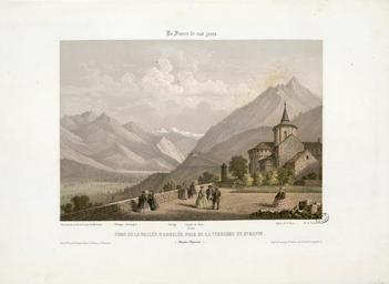 Keywords: Fond de la Vallée d'Argelès, prise de la terrasse de St. Savin (Hautes-Pyrénées) - Fonds Ancely - B315556101 A MERCEREAU 7 032.jpg Impression en 3 coul par Frick frères à Paris Fait partie d'un ensemble de recueils de lithographies de Mercereau composés de lithographies provenant de La France de nos jours vaste suite publiée par livraisons de 1853 à 1876 et comprenant 475 planches en deux tirages l'un à deux teintes noir et bistre l'autre en couleurs Les libraires ont réuni ces planches en albums de composition variable quant au nombre de planches et aux dessinateurs Asselineau Mercereau Maurice Deroy etc Un titre Les Pyrénées par Ch Mercereau; Bagnères-de-Luchon par Ch Mercereau était frappé sur le plat supérieur de la reliure de l'album ainsi que le nom du Libraire pour lequel il était réalisé La plupart des recueils de ces planches pyrénéennes portent le nom de Sajous libraire à Bagnères-de-Luchon Pl 1 à 18 numérotées de 370 à 386 Pl 374 pl 5 et 6 en double -- Pl 19 20 et 21 numérotées respectivement 407 415 et 418 Ces trois pl ont été dessinées et lithographiées par Asselineau -- Pl 22 23 et 24 numérotées 438 439 et 440 -- Pl 22 lith par Aubrun -- Pl 25 numérotée 441 -- Pl 26 à 40 numérotées de 327 à 341 -- Pl 41 à 46 numérotées de 363 à 368 -- Pl 47 numérotée 369 -- Pl 48 num 292 -- Pl 49 et 50 num 264 et 265 -- Pl 51 et 52 num 268 et 269 -- Pl 53 à 55 num de 293 à 295 -- Pl 56 num 300 -- Pl 57 à 59 num de 307 à 309 -- Pl 60 à 70 num de 316 à 326 -- Pl 71 num 63 dessin et lith d'Asselineau imprimerie Destouches -- Pl 72 et 73 num 87 et 88 dessin et lith d'Asselineau imprimerie Destouches -- Pl 74 num 124 signée Lebreton éditée chez Lalonde à Paris et imprimée chez Becquet frères à Paris -- Pl 75 num 161 dessin et litho d'Asselineau imprimerie Destouches --Pl 76 à 78 num de 207 à 209 -- Pl 79 à 81 num de 211 à 213 -- Pl 82 num 220 dessin et lith de Maurice imprimerie Destouches -- Pl 83 à 86 num de 226 à 229 -- Pl 87 et 88 num 234 et 235 -- Pl 89 à 91 num de 273 à 275 -- Pl 92 et 93 num 290 et 291 Pièces jointes 6 pl sépia dont certaines sont des doubles du recueil de Mercereau Les cinq premières planches sont numérotées respectivement 318 321 324 331 386 La dernière planche n'est pas extraite de La France de nos jours mais de L'Espagne pittoresque et monumentale Ces six planches sont signées Mercereau éditées chez Sinnet et imprimées chez Frick frères Ancely René 1876 - 1966 Possesseur fre public domain domaine public B315556101_A_MERCEREAU_7_032 jpg image/jpeg 1 f de pl lithogr ; 32 cm oblong Frick frères Imprimeur Sinnet F Éditeur http //numerique bibliotheque toulouse fr/collect/general/index/assoc//ark /74899/B315556101_A_MERCEREAU_7_032 dir/B315556101_A_MERCEREAU_7_032 jpg Bibliothèque municipale de Toulouse A-MERCEREAU 7-32 Creator Charles Mercereau http //catalogues toulouse fr/web2/tramp2 exe/do_keyword_search/log_in setting_key BMT1 servers 1home query p001656 St Jean-de-Luz intérieur de l'Eglise St Jean-de-Luz le Château de l'Infante Biarritz Vue générale prise du Phare Château de Mauvesin près Bagnères-de-Bigorre Hautes Pyrénées Bagnères de Bigorre Hautes Pyrénées - Intérieur de l'Eglise des Carmes en couleurs Bagnères de Bigorre Hautes Pyrénées - Intérieur de l'Eglise des Carmes Bagnères-de-Bigorre - Eglise et couvent des Carmes Bagnères-de-Bigorre Hautes-Pyrénées - Tour des Jacobins Cascade et Pont de Magenta Vallée de l'Esponne Hautes Pyrénées Cascade de Trémes-Aïgues Vallée de Grip Hautes Pyrénées St Sauveur Hautes Pyrénées - Le Pont Napoléon Bayonne - Eglise St André Arreau et la Vallée d'Aure Hautes Pyrénées - Vue prise au dessus de la route du Col d'Aspin Auch - Vue prise sur les bords du Gers Auch - Vue de la Cathédrale Auch - Intérieur de la Cathédrale Bagnères-de-Bigorre - Vue Générale prise de la Fontaine ferrugineuse Eaux-Bonnes Basses-Pyrénées - L'établissement Thermal et la Chapelle Nantes - Vue de l'Eglise Ste Croix Le Croisic - Plage des Baigneurs et Etablissement de Bains Le Folgoët - Vue de l'Eglise Brèche de Roland prise de Gèdres Hautes Pyrénées Eglise des Templiers à Luz Chapelle du couvent de Pouëlahun i e Pouey Lahun - Vallée d'Azun Hautes Pyrénées Le Pont de Scia - Route de Luz à Gavarnie Hautes-Pyrénées Vue de l'établissement de la Raillière près Cauterets Hautes-Pyrénées Vue générale de Cauterets prise du Mamelon Vert Hautes-Pyrénées Vue du Fort de Lourdes Hautes-Pyrénées Vue d'Argelès-de-Bigorre Hautes-Pyrénées Vue de St Sauveur Hautes-Pyrénées Le Pas de l'Echelle Route de Gavarnie Hautes-Pyrénées Place Grammont à Pau Basses-Pyrénées Vue générale des Eaux-Bonnes Basses-Pyrénées Barèges et la Vallée du Bastan Hautes-Pyrénées Chute supérieure du Pont d'Espagne Hautes-Pyrénées La grotte miraculeuse à Lourdes Hautes-Pyrénées Eglise de Bétharram et Pont de Lestelle Basses Pyrénées Cascade du Cerizet Près Cauterets Hautes-Pyrénées Pic du Midi d'Ossau 2885m Basses Pyrénées - Vue prise du 3e plateau de Bious-Artigues Pau - Vue prise de la terrasse du Château Toulouse - Cloître du Musée Galerie du Moyen-Age Pau - Vue du Château prise du Parc Toulouse - Cloître du Musée et Clocher des Augustins Toulouse - La maison de pierre fragment de la façade Toulouse - Intérieur de St Sernin St Jean-de-Luz Fort du Socoa Toulouse - Vue du Capitole Bordeaux Vue de la Porte du Caillau i e Cailhau Bordeaux Porte de la grosse Cloche Bordeaux Vue des Quinconces Bordeaux - Vue de la Tour et de l'Eglise de St Michel Toulouse - Vue du Pont de pierre prise du Quai de Brienne Toulouse - Abside de l'Eglise de St Sernin de l'an 1097 Toulouse - Choeur de la Cathédrale St Etienne Rouen - Hôtel de Bourgtheroulde Biarritz - Vue des Bains Napoléon et du Casino Biarritz - Vue des Bains du Port Vieux Biarritz - Vue de l'Entrée de la Ville à l'arrivée de Bayonne Le Lac Bleu Hautes-P