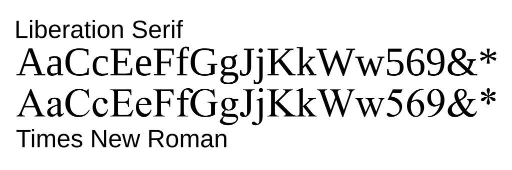 | Keywords: Font Comparison - Liberation Serif to Times New Roman.svg Comparison of Liberation Serif to en Times New Roman The Liberation font while different is designed to have the same metrics as the other one thus the relevance of the comparison note the identical text alignment Created in Inkscape Fonts converted to paths for maximum compatibility with systems lacking the relevant fonts including Wikipedia's renderer Transferred from http //en wikipedia org en wikipedia 2007-08-04 Original uploader was Alan De Smet at http //en wikipedia org en wikipedia Released into the public domain by the author en wikipedia Alan De Smet original upload log page en wikipedia Font_Comparison_-_Liberation_Serif_to_Times_New_Roman svg 2007-08-04 22 41 Alan De Smet 450×150× 115015 bytes <nowiki> Summary Comparison of Liberation Serif to Times New Roman The Liberation font while different is designed to have the same metrics as the other one thus the relevance of the comparison note the identical text alignment</nowiki> Times New Roman Font comparisons Liberation Serif |