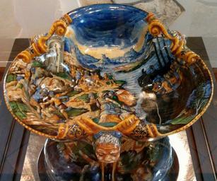 | Keywords: Fontana Rinfrescatoi basin.jpg Artwork Creator Orazio Fontana 1565-1571 tin glazing earthenware Maiolica istoriato Institution District Museum in Tarnów Town Hall accession number object history credit line Trilobate cistern rinfrescatoi cooler held scented water offered to guests to wash their hands and cooled wine glasses and bottles Paulina Chrzanowska 1988 Ratusz w Tarnowie Muzeum Okręgowe w Tarnowie p 25 own See below cc-zero DEFAULTSORT 1565-1571; Rinfrescatoi basin Orazio Fontana Ceramics in the District Museum in Tarnów |