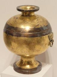 Keywords: Food Container on High Foot (Dou) with Pushou Mask Ring Handles, probably 2nd-1st century BC, Western Han period, China, gilt and silvered bronze - Sackler Museum - DSC02608.JPG Exhibit in the Sackler Museum Harvard University Cambridge Massachusetts USA The museum permitted photography of this artwork without restriction This artwork is in the public domain because the artist died more than 70 years ago Daderot 2012-11-17 12 44 58 Daderot cc0 cc0 Chinese metalwork in the Sackler Museum Bronze of the Western Han Dynasty Metal jars Food jars metal |
