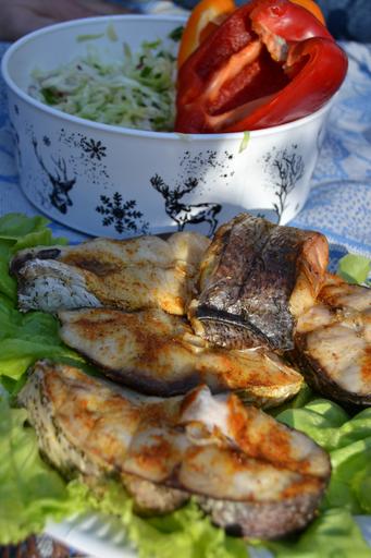 Keywords: food fish picnic salad grill