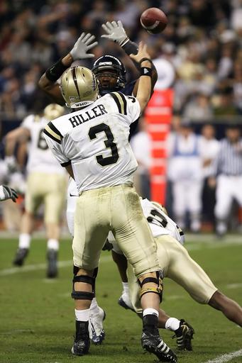 Keywords: football american football quarterback pass play throwing sport ball game pigskin team competition helmet athlete player blocker block defender throw gridiron stadium competitor athletic passer rusher competitive