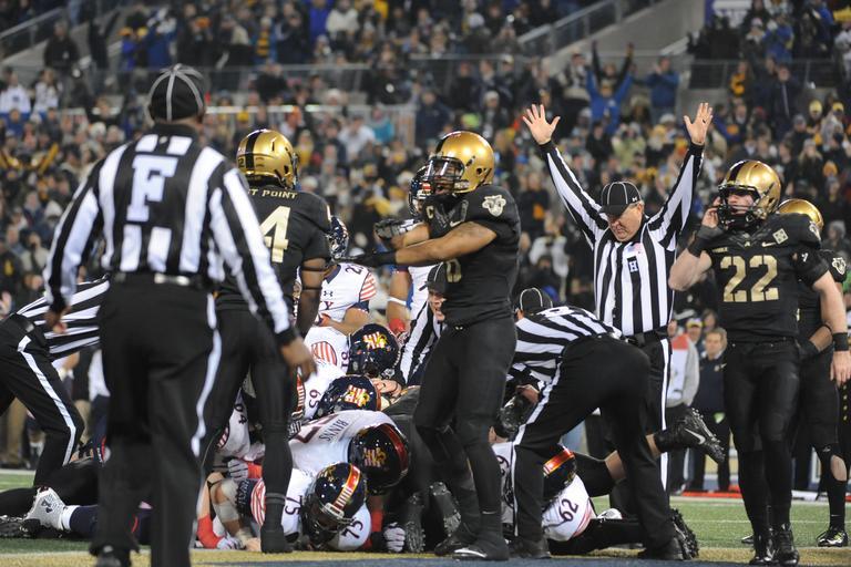 Keywords: football american touchdown referee signal game stadium sport team players competition action goal