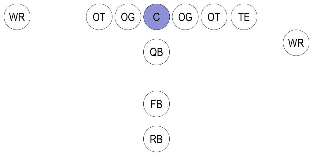 Keywords: Football-Formation-C.svg The placement of the center position in American football self-made using http //inkscape org/ Inkscape 12-31-07 Gonzo fan2007 Public Domain User Gonzo fan2007/Public ImageNote 1 599 92 12 12 1200 600 2 Center ImageNoteEnd 1 ImageNote 2 593 231 12 12 1200 600 2 Quarterback ImageNoteEnd 2 ImageNote 3 594 557 12 12 1200 600 2 Running Back ImageNoteEnd 3 ImageNote 4 56 95 12 12 1200 600 2 Wide receiver ImageNoteEnd 4 ImageNote 5 1124 191 12 12 1200 600 2 Wide receiver ImageNoteEnd 5 ImageNote 6 933 93 12 12 1200 600 2 Tight end ImageNoteEnd 6 ImageNote 7 377 93 12 12 1200 600 2 Offensive tackle ImageNoteEnd 7 ImageNote 8 702 90 12 12 1200 600 2 Offensive guard ImageNoteEnd 8 ImageNote 9 482 92 12 12 1200 600 2 Offensive guard ImageNoteEnd 9 ImageNote 10 816 93 12 12 1200 600 2 Offensive tackle ImageNoteEnd 10 ImageNote 11 590 428 12 12 1200 600 2 Fullback ImageNoteEnd 11 American football formation diagrams I formation |