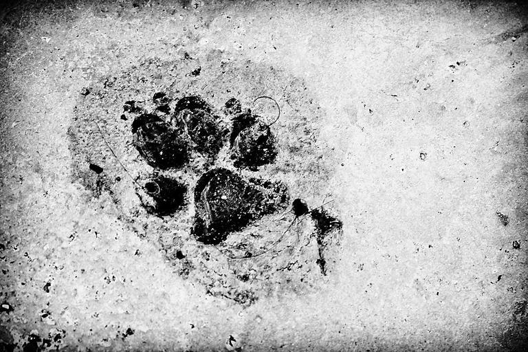 Keywords: footprint dog friend black and white water cement pet wolf love amici man