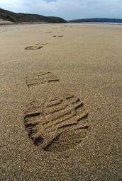 Keywords: footprint sand track print foot boot beach journey travel walk walking step trek tread distance progress trip escape voyage landscape way hard far adventure explore evidence sign clue