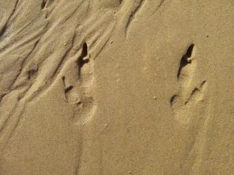 Keywords: footprints sand tracks footprint footsteps track foot trace imprint trail footstep beach barefoot feet step stepping walk walking outline coast seashore sandy shore vacation holiday journey