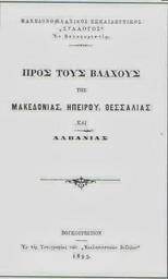 Keywords: For the Vlachs.jpg en For the Vlachs 1895 scanned Macedonian Committee in Bucharest other versions Custom license marker 2015 02 03 PD-old Uploaded with UploadWizard 1895 book covers Books from Romania Books in Greek