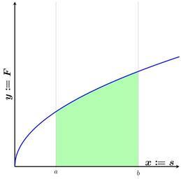 Keywords: Force-distance-diagram.svg en Force-distance diagramm The marked area is work Force is variable de Kraft-Weg Diagramm bei veränderbarer Kraft Die markierte Fläche ist die verrichtete Arbeit own MartinThoma 2014-08-12 cs 0 0 5 anchor south rotate 90 font \boldmath\Large \addplotdomain 0 4 blue very thick samples 500 name path f sqrt x ; \pathname path axis axis cs 0 0 -- axis cs 10 0 ; \addplotfill green fill opacity 0 3 fill betweenof f and axis soft clip domain 1 3 ; \end axis \end tikzpicture \end document </source> Mechanical work Displacement Images by Martin Thoma/Physics TikZ diagrams Cc-zero force-distance diagrams |