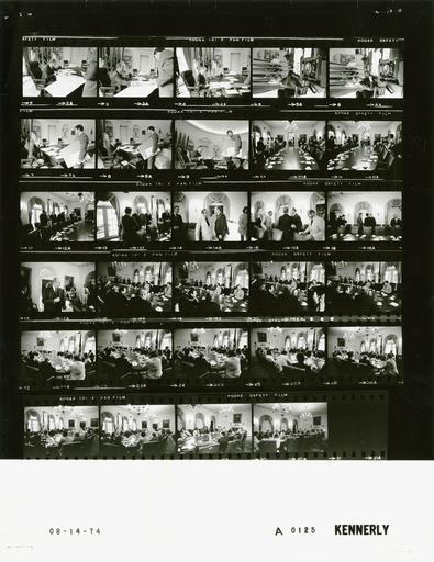 | Keywords: Ford A0125 NLGRF photo contact sheet (1974-08-14)(Gerald Ford Library).jpg White House Photographic Office WHPO is housed at the Gerald R Ford Presidential Library a branch of the National Archives and Records Administration NARA <br/><br/> This file is a 200 dpi photo contact sheet having images from roll of film A0125 of the August 9 1974 - January 20 1977 Gerald R Ford White House Photographic Office Series A0001-A9999 and B0001-B2886 photographs <br/><br/> The date on the photo contact sheet is the date the roll of film was processed not necessarily the date the photographs were taken See table below for additional details 1974-08-14 Gerald R Ford Presidential Library Image http //www fordlibrarymuseum gov/library/whphotos/A0125_NLGRF jpg A0125_NLGRF jpg from http //www fordlibrarymuseum gov/library/whphotos/19740814whpo pdf White House Photographs August 14 1974 of the http //www fordlibrarymuseum gov/Library/whphotos/whpo asp White House Photographic Collection page White House Photographic Office WHPO <br/> Creator David Hume Kennerly PD-USGov Institution Institution Gerald R Ford Presidential Library Table wikitable sortable + Photo contact sheet A0125 U S President Ford Administration Gerald R Ford Library Frame s Tone Subject proper Subject generic Names Geographic Location Photographer Date - 2A-3A BW at desk O'Donnell standing GRF O'Donnell Oval Office Kennerly 1974-08-14 - 4A-6A BW working at desk GRF Oval Office Kennerly 1974-08-14 - 7A-9A BW at desk O'Donnell standing GRF O'Donnell Oval Office Kennerly 1974-08-14 - 10A-11A BW National Governors' Conference delegation entering room GRF Governors Rampton UT Ray IA Waller MS Bond MO Gilligan OH Holshauser NC Salmon VT Evans WA Moore WV Vanderhoof CO Milliken MI Evans VI Shapp PA Dunn TN Anderson MN ; Scranton Cole Falk; Charles Byrley Cabinet Room Kennerly 1974-08-14 - 12A-17A BW National Governors' Conference delegation greeting individuals GRF Governors Rampton UT Ray IA Waller MS Bond MO Gilligan OH Holshauser NC Salmon VT Evans WA Moore WV Vanderhoof CO Milliken MI Evans VI Shapp PA Dunn TN Anderson MN ; Scranton Cole Falk; Charles Byrley Cabinet Room Kennerly 1974-08-14 - 18A-30A BW National Governors' Conference delegation meeting seated around table GRF Governors Rampton UT Ray IA Waller MS Bond MO Gilligan OH Holshauser NC Salmon VT Evans WA Moore WV Vanderhoof CO Milliken MI Evans VI Shapp PA Dunn TN Anderson MN ; Scranton Cole Falk; Charles Byrley Cabinet Room Kennerly 1974-08-14 Gerald R Ford Presidential Library and Museum-cooperation PD-USGov Contact sheets by the Ford White House August 1974 Photographs by David Hume Kennerly from 1974 |