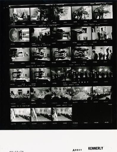 | Keywords: Ford A0544 NLGRF photo contact sheet (1974-09-05)(Gerald Ford Library).jpg White House Photographic Office WHPO is housed at the Gerald R Ford Presidential Library a branch of the National Archives and Records Administration NARA <br/><br/> This file is a 200 dpi photo contact sheet having images from roll of film A0544 of the August 9 1974 - January 20 1977 Gerald R Ford White House Photographic Office Series A0001-A9999 and B0001-B2886 photographs <br/><br/> The date on the photo contact sheet is the date the roll of film was processed not necessarily the date the photographs were taken See table below for additional details 1974-09-05 Gerald R Ford Presidential Library Image http //www fordlibrarymuseum gov/library/whphotos/A0544_NLGRF jpg A0544_NLGRF jpg from http //www fordlibrarymuseum gov/library/whphotos/19740905whpo pdf White House Photographs September 5 1974 of the http //www fordlibrarymuseum gov/Library/whphotos/whpo asp White House Photographic Collection page White House Photographic Office WHPO <br/> Creator David Hume Kennerly PD-USGov Institution Institution Gerald R Ford Presidential Library Table wikitable sortable + Photo contact sheet A0544 U S President Ford Administration Gerald R Ford Library Frame s Tone Subject proper Subject generic Names Geographic Location Photographer Date - 3-5 BW Assistant to the President GRF seated Hartmann standing GRF Hartmann Oval Office Kennerly 1974-09-05 - 6-7 BW standing behind desk - rear view GRF Oval Office Kennerly 1974-09-05 - 8 BW standing behind desk - front view GRF Oval Office Kennerly 1974-09-05 - 9 BW going up to first floor GRF Secret Service Elevator Kennerly 1974-09-05 - 10 BW walking into Green Room GRF Secret Service Center Hall Kennerly 1974-09-05 - 11 BW looking into Cross Hall GRF Secret Service Green Room Kennerly 1974-09-05 - 12-13 BW standing talking GRF O'Donnell Hartmann Green Room Kennerly 1974-09-05 - 14-16 BW standing reading document; all not in every frame GRF O'Donnell Hartmann Marsh Unidentified Man Green Room Kennerly 1974-09-05 - 17 BW standing GRF Hartmann Marsh Others Green Room Kennerly 1974-09-05 - 18-19 BW standing talking laughing GRF Hartmann Marsh Green Room Kennerly 1974-09-05 - 20 BW Conference on Inflation walking into room; others standing applauding GRF Panelists East Room Kennerly 1974-09-05 - 21-22 BW Conference on Inflation GRF standing; others standing applauding GRF Panelists East Room Kennerly 1974-09-05 - 23 BW Conference on Inflation seated around table; taken across from GRF Sens Bentsen Dominick Tower Proxmire; Greenspan GRF Reps Rhodes Patman; Panelists East Room Kennerly 1974-09-05 - 24 BW Conference on Inflation seated around table; taken from right of GRF Sens Bentsen Dominick Tower Proxmire; Greenspan GRF Reps Rhodes Panelists East Room Kennerly 1974-09-05 - 25 BW Conference on Inflation seated around table; taken from right of GRF Sens Bentsen Dominick Tower Proxmire; Greenspan GRF Reps Rhodes Patman; all Panelists East Room Kennerly 1974-09-05 - 26 BW Conference on Inflation seated around table; taken from left of GRF Sens Bentsen Dominick Tower Proxmire; Greenspan GRF Reps Rhodes Patman; all Panelists East Room Kennerly 1974-09-05 - 27 BW Conference on Inflation seated around table; taken from behind GRF Sens Bentsen Dominick Tower Proxmire; Greenspan GRF Reps Rhodes Patman; Panelists East Room Kennerly 1974-09-05 - 28-30 BW Conference on Inflation seated around table; looking right towards chart Sens Tower Proxmire; GRF Greenspan Reps Rhodes Patman; Panelists East Room Kennerly 1974-09-05 Gerald R Ford Presidential Library and Museum-cooperation PD-USGov Contact sheets by the Ford White House September 1974 Photographs by David Hume Kennerly from 1974 Conference on Inflation 1974 |