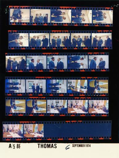 | Keywords: Ford A0588 NLGRF photo contact sheet (1974-09-06)(Gerald Ford Library).jpg White House Photographic Office WHPO is housed at the Gerald R Ford Presidential Library a branch of the National Archives and Records Administration NARA <br/><br/> This file is a 200 dpi photo contact sheet having images from roll of film A0588 of the August 9 1974 - January 20 1977 Gerald R Ford White House Photographic Office Series A0001-A9999 and B0001-B2886 photographs <br/><br/> The date on the photo contact sheet is the date the roll of film was processed not necessarily the date the photographs were taken See table below for additional details 1974-09-06 Gerald R Ford Presidential Library Image http //www fordlibrarymuseum gov/library/whphotos/A0588_NLGRF jpg A0588_NLGRF jpg from http //www fordlibrarymuseum gov/library/whphotos/19740906whpo pdf White House Photographs September 6 1974 of the http //www fordlibrarymuseum gov/Library/whphotos/whpo asp White House Photographic Collection page White House Photographic Office WHPO - Thomas PD-USGov Institution Institution Gerald R Ford Presidential Library Table wikitable sortable + Photo contact sheet A0588 U S President Ford Administration Gerald R Ford Library Frame s Tone Subject proper Subject generic Names Geographic Location Photographer Date - 2 Color Vice President-designate seated waiting to enter Oval Office Rockefeller Scheduling and Advance Office Thomas 1974-09-06 - 3 Color Representative from Iowa NAR greeting Stanley and Burch; O'Donnell behind Rockefeller Rep David Stanley Burch O'Donnell Scheduling and Advance Office Thomas 1974-09-06 - 4-7 Color Representative from Iowa talking handshaking Rockefeller Rep David Stanley Scheduling and Advance Office Thomas 1974-09-06 - 8-12 Color Representative from Iowa talking handshaking Rockefeller Rep David Stanley Burch Scheduling and Advance Office Thomas 1974-09-06 - 13-19 Color standing talking GRF Unidentified Man Oval Office Thomas 1974-09-06 - 20 Color Vice President-designate seated talking; from right front corner of desk GRF Rockefeller Oval Office Thomas 1974-09-06 - 21-23 Color Vice President-designate seated talking; from behind NAR GRF Rockefeller Oval Office Thomas 1974-09-06 - 24-27 Color Vice President-designate sitting NAR leaning on desk; across from left GRF Rockefeller Oval Office Thomas 1974-09-06 - 28 Color Vice President-designate sitting NAR leaning on desk; medium from right GRF Rockefeller Oval Office Thomas 1974-09-06 Gerald R Ford Presidential Library and Museum-cooperation PD-USGov Contact sheets by the Ford White House September 1974 |
