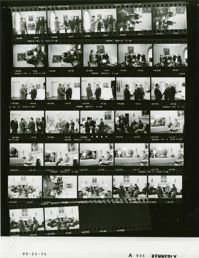 Keywords: Ford A0905 NLGRF photo contact sheet (1974-09-20)(Gerald Ford Library).jpg White House Photographic Office WHPO is housed at the Gerald R Ford Presidential Library a branch of the National Archives and Records Administration NARA <br/><br/> This file is a 200 dpi photo contact sheet having images from roll of film A0905 of the August 9 1974 - January 20 1977 Gerald R Ford White House Photographic Office Series A0001-A9999 and B0001-B2886 photographs <br/><br/> The date on the photo contact sheet is the date the roll of film was processed not necessarily the date the photographs were taken See table below for additional details 1974-09-20 Gerald R Ford Presidential Library Image http //www fordlibrarymuseum gov/library/whphotos/A0905_NLGRF jpg A0905_NLGRF jpg from http //www fordlibrarymuseum gov/library/whphotos/19740920whpo pdf White House Photographs September 20 1974 of the http //www fordlibrarymuseum gov/Library/whphotos/whpo asp White House Photographic Collection page White House Photographic Office WHPO <br/> Creator David Hume Kennerly PD-USGov Institution Institution Gerald R Ford Presidential Library Table wikitable sortable + Photo contact sheet A0905 U S President Ford Administration Gerald R Ford Library Frame s Tone Subject proper Subject generic Names Geographic Location Photographer Date - 4-6 BW Soviet Foreign Minister; Ambassador of Union of Soviet Socialist Republics USSR to United States Thomas speaking pointing; Gromyko and Sukhrodev listening; others in back Ambassador Stoessel Andrei Gromyko Ambassador Anatoly Dobrynin Victor Sukhrodev Ricardo Thomas Cabinet Room Kennerly 1974-09-20 - 7-10 BW Soviet Foreign Minister; interpreter looking at Apollo-Soyuz model on table Andrei Gromyko Victor Sukhrodev Cabinet Room Kennerly 1974-09-20 - 11 BW Soviet Foreign Minister; interpreter talking near Apollo-Soyuz model on table Scowcroft Andrei Gromyko Ambassador Henry Catto Victor Sukhrodev Cabinet Room Kennerly 1974-09-20 - 12-13 BW Soviet Foreign Minister; Ambassador of Union of Soviet Socialist Republics USSR to United States talking near Apollo-Soyuz model on table Scowcroft Andrei Gromyko Ambassador Henry Catto Victor Sukhrodev Ambassador Stoessel Ambassador Anatoly Dobrynin Cabinet Room Kennerly 1974-09-20 - 14-16 BW Soviet Foreign Minister; Ambassador of Union of Soviet Socialist Republics USSR to United States greeting handshaking; Catto obscured in third frame GRF Andrei Gromyko Ambassador Henry Catto Ambassador Anatoly Dobrynin Oval Office Kennerly 1974-09-20 - 17-18 BW Soviet Foreign Minister; Ambassador of Union of Soviet Socialist Republics USSR to United States greeting handshaking GRF Kissinger Andrei Gromyko Ambassador Henry Catto Ambassador Anatoly Dobrynin Oval Office Kennerly 1974-09-20 - 19 BW Soviet Foreign Minister; Ambassador of Union of Soviet Socialist Republics USSR to United States greeting handshaking GRF Kissinger Ambassador Stoessel Andrei Gromyko Ambassador Anatoly Dobrynin Victor Sukhrodev Ambassador Henry Catto Oval Office Kennerly 1974-09-20 - 20 BW Soviet Foreign Minister; interpreter walking towards fireplace GRF Andrei Gromyko Victor Sukhrodev Oval Office Kennerly 1974-09-20 - 21 BW Soviet Foreign Minister; Ambassador of Union of Soviet Socialist Republics USSR to United States three standing near fireplace; GRF seated in background GRF Kissinger Ambassador Anatoly Dobrynin Victor Sukhrodev Oval Office Kennerly 1974-09-20 - 22 BW Soviet Foreign Minister; Ambassador of Union of Soviet Socialist Republics USSR to United States seated near fireplace; Kissinger's back to camera; media in background GRF Andrei Gromyko Ambassador Anatoly Dobrynin Kissinger Media Oval Office Kennerly 1974-09-20 - 23-25 BW Soviet Foreign Minister; Ambassador of Union of Soviet Socialist Republics USSR to United States seated near fireplace; Kissinger's back to camera; media in background GRF Kissinger Andrei Gromyko Media Oval Office Kennerly 1974-09-20 - 26-28 BW Soviet Foreign Minister; Ambassador of Union of Soviet Socialist Republics USSR to United States seated near fireplace; Kissinger's back to camera; media in background GRF Kissinger Andrei Gromyko Ambassador Anatoly Dobrynin Victor Sukhrodev Media Oval Office Kennerly 1974-09-20 - 29-31 BW Soviet Foreign Minister; Ambassador of Union of Soviet Socialist Republics USSR to United States; Brezhnev's personal interpreter Sukhrodev seated near fireplace GRF Kissinger Ambassador Stoessel Andrei Gromyko Ambassador Anatoly Dobrynin Victor Sukhrodev Oval Office Kennerly 1974-09-20 - 32 BW Soviet Foreign Minister; Ambassador of Union of Soviet Socialist Republics USSR to United States Dobrynin; U S Ambassador to USSR Stoessel seated near fireplace GRF Kissinger Ambassador Walter J Stoessel Andrei Gromyko Ambassador Anatoly Dobrynin Oval Office Kennerly 1974-09-20 - 33-35 BW Soviet Foreign Minister; Ambassador of Union of Soviet Socialist Republics USSR to United States seated near fireplace GRF Kissinger Ambassador Stoessel Andrei Gromyko Ambassador Anatoly Dobrynin Victor Sukhrodev Oval Office Kennerly 1974-09-20 Gerald R Ford Presidential Library and Museum-cooperation PD-USGov Contact sheets by the Ford White House September 1974 Photographs by David Hume Kennerly from 1974 |