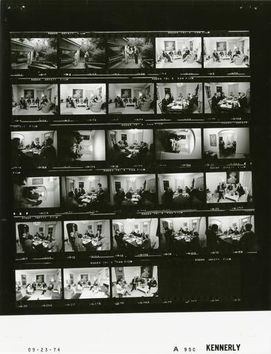 | Keywords: Ford A0950 NLGRF photo contact sheet (1974-09-23)(Gerald Ford Library).jpg White House Photographic Office WHPO is housed at the Gerald R Ford Presidential Library a branch of the National Archives and Records Administration NARA <br/><br/> This file is a 200 dpi photo contact sheet having images from roll of film A0950 of the August 9 1974 - January 20 1977 Gerald R Ford White House Photographic Office Series A0001-A9999 and B0001-B2886 photographs <br/><br/> The date on the photo contact sheet is the date the roll of film was processed not necessarily the date the photographs were taken See table below for additional details 1974-09-23 Gerald R Ford Presidential Library Image http //www fordlibrarymuseum gov/library/whphotos/A0950_NLGRF jpg A0950_NLGRF jpg from http //www fordlibrarymuseum gov/library/whphotos/19740923whpo pdf White House Photographs September 23 1974 of the http //www fordlibrarymuseum gov/Library/whphotos/whpo asp White House Photographic Collection page White House Photographic Office WHPO <br/> Creator David Hume Kennerly PD-USGov Institution Institution Gerald R Ford Presidential Library Table wikitable sortable + Photo contact sheet A0950 U S President Ford Administration Gerald R Ford Library Frame s Tone Subject proper Subject generic Names Geographic Location Photographer Date - 1A-3A BW Breakfast hosted by Sen Mansfield greeting embracing handshaking on driveway GRF Sen Mike Mansfield Maureen Mansfield Washington DC Senator Mike Mansfield Residence Kennerly 1974-09-23 - 4A-8A BW Breakfast hosted by Sen Mansfield seated talking GRF Sen Mike Mansfield Maureen Mansfield Sens Byrd Mathias Inouye; Jane Engelhardt Washington DC Senator Mike Mansfield Residence - Living Room Kennerly 1974-09-23 - 9A-18A BW Breakfast hosted by Sen Mansfield seated eating GRF Sen Mike Mansfield Maureen Mansfield Sens Byrd Mathias Inouye; Jane Engelhardt Washington DC Senator Mike Mansfield Residence - Dining Room Kennerly 1974-09-23 - 19A-20A BW Breakfast hosted by Sen Mansfield seated eating - taken through arch from adjacent room GRF Sen Mike Mansfield Maureen Mansfield Sens Byrd Mathias Inouye; Jane Engelhardt Washington DC Senator Mike Mansfield Residence - Dining Room Kennerly 1974-09-23 - 21A BW Breakfast hosted by Sen Mansfield walking into dining room Servers Washington DC Senator Mike Mansfield Residence - Dining Room Kennerly 1974-09-23 - 22A BW Breakfast hosted by Sen Mansfield seated getting coffee GRF Sen Mike Mansfield Maureen Mansfield Sens Byrd Mathias Inouye; Jane Engelhardt Washington DC Senator Mike Mansfield Residence - Dining Room Kennerly 1974-09-23 - 23A-24A BW Breakfast hosted by Sen Mansfield seated talking GRF Sen Mike Mansfield Maureen Mansfield Sens Byrd Mathias Inouye; Jane Engelhardt Washington DC Senator Mike Mansfield Residence - Dining Room Kennerly 1974-09-23 - 25A BW Breakfast hosted by Sen Mansfield seated talking GRF Sen Mathias Jane Engelhardt Unidentified Woman Washington DC Senator Mike Mansfield Residence - Living Room Kennerly 1974-09-23 - 26A-28A BW Breakfast hosted by Sen Mansfield seated talking; all not in every frame GRF Sen Mike Mansfield Maureen Mansfield Sens Byrd Mathias Inouye; Jane Engelhardt Others Washington DC Senator Mike Mansfield Residence - Living Room Kennerly 1974-09-23 Gerald R Ford Presidential Library and Museum-cooperation PD-USGov Contact sheets by the Ford White House September 1974 Photographs by David Hume Kennerly from 1974 |