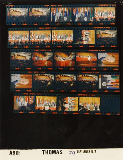 | Keywords: Ford A0966 NLGRF photo contact sheet (1974-09-24)(Gerald Ford Library).jpg White House Photographic Office WHPO is housed at the Gerald R Ford Presidential Library a branch of the National Archives and Records Administration NARA <br/><br/> This file is a 200 dpi photo contact sheet having images from roll of film A0966 of the August 9 1974 - January 20 1977 Gerald R Ford White House Photographic Office Series A0001-A9999 and B0001-B2886 photographs <br/><br/> The date on the photo contact sheet is the date the roll of film was processed not necessarily the date the photographs were taken See table below for additional details 1974-09-24 Gerald R Ford Presidential Library Image http //www fordlibrarymuseum gov/library/whphotos/A0966_NLGRF jpg A0966_NLGRF jpg from http //www fordlibrarymuseum gov/library/whphotos/19740924whpo pdf White House Photographs September 24 1974 of the http //www fordlibrarymuseum gov/Library/whphotos/whpo asp White House Photographic Collection page White House Photographic Office WHPO - Thomas PD-USGov Institution Institution Gerald R Ford Presidential Library Table wikitable sortable + Photo contact sheet A0966 U S President Ford Administration Gerald R Ford Library Frame s Tone Subject proper Subject generic Names Geographic Location Photographer Date - 5-6 Color Address to the International Association of Police Chiefs GRF speaking at podium; others seated listening - extreme long shot GRF Platform Guests Others Washington DC International Ballroom - Washington Hilton Hotel Thomas 1974-09-24 - 7-8 Color Address to the International Association of Police Chiefs speaking at podium - medium range GRF Washington DC International Ballroom - Washington Hilton Hotel Thomas 1974-09-24 - 9-18 Color Address to the International Association of Police Chiefs GRF at podium - taken from various angles and distances GRF Platform Guests Others Washington DC International Ballroom - Washington Hilton Hotel Thomas 1974-09-24 - 19-20 Color Address to the International Association of Police Chiefs speaking - head and shoulder portrait s GRF Washington DC International Ballroom - Washington Hilton Hotel Thomas 1974-09-24 - 21-23 Color Address to the International Association of Police Chiefs GRF speaking at podium taken extreme long shot from back of room GRF Platform Guests Others Washington DC International Ballroom - Washington Hilton Hotel Thomas 1974-09-24 - 24-25 Color Address to the International Association of Police Chiefs speaking from podium; Presidential Seal visible on front GRF Washington DC International Ballroom - Washington Hilton Hotel Thomas 1974-09-24 - 26-27 Color Address to the International Association of Police Chiefs GRF speaking at podium medium range GRF Platform Guests Others Washington DC International Ballroom - Washington Hilton Hotel Thomas 1974-09-24 - 28 Color Address to the International Association of Police Chiefs standing applauding - GRF obscured Crowd Washington DC International Ballroom - Washington Hilton Hotel Thomas 1974-09-24 Gerald R Ford Presidential Library and Museum-cooperation PD-USGov Contact sheets by the Ford White House September 1974 |