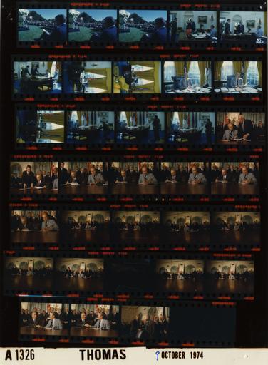 | Keywords: Ford A1326 NLGRF photo contact sheet (1974-10-09)(Gerald Ford Library).jpg White House Photographic Office WHPO is housed at the Gerald R Ford Presidential Library a branch of the National Archives and Records Administration NARA <br/><br/> This file is a 200 dpi photo contact sheet having images from roll of film A1326 of the August 9 1974 - January 20 1977 Gerald R Ford White House Photographic Office Series A0001-A9999 and B0001-B2886 photographs <br/><br/> The date on the photo contact sheet is the date the roll of film was processed not necessarily the date the photographs were taken See table below for additional details 1974-10-09 Gerald R Ford Presidential Library Image http //www fordlibrarymuseum gov/library/whphotos/A1326_NLGRF jpg A1326_NLGRF jpg from http //www fordlibrarymuseum gov/library/whphotos/19741009whpo pdf White House Photographs October 9 1974 of the http //www fordlibrarymuseum gov/Library/whphotos/whpo asp White House Photographic Collection page White House Photographic Office WHPO - Thomas PD-USGov Institution Institution Gerald R Ford Presidential Library Table wikitable sortable + Photo contact sheet A1326 U S President Ford Administration Gerald R Ford Library Frame s Tone Subject proper Subject generic Names Geographic Location Photographer Date - 24A-29A Color Signing Joint Statements on the Development of Economic Industrial and Technical Cooperation and Principles of U S - Polish Relations GRF and Gierek seated at table signing documents - long shots GRF First Secretary Edward Gierek Others Cabinet Room Thomas 1974-10-09 - 30A Color Thomas 1974-10-09 - 31A-32A Color Signing Joint Statements on the Development of Economic Industrial and Technical Cooperation and Principles of U S - Polish Relations GRF and Gierek seated at table signing documents - long shots GRF First Secretary Edward Gierek Mieczyslaw Jagielski Stefan Olszowski Ryszard Frelek Witold Trampczynski Benon Stranz Wlodzimierz Wisniewski Others Cabinet Room Thomas 1974-10-09 - 33A-34A Color Following Signing Joint Statements on the Development of Economic Industrial and Technical Cooperation and Principles of U S -Polish Relations GRF and Gierek handshaking; others standing behind GRF First Secretary Edward Gierek Mieczyslaw Jagielski Stefan Olszowski Ryszard Frelek Witold Trampczynski Benon Stranz Wlodzimierz Wisniewski Others Cabinet Room Thomas 1974-10-09 - 35A Color Following Signing Joint Statements on the Development of Economic Industrial and Technical Cooperation and Principles of U S -Polish Relations GRF and Gierek walking from table GRF First Secretary Edward Gierek Mieczyslaw Jagielski Stefan Olszowski Ryszard Frelek Witold Trampczynski Benon Stranz Wlodzimierz Wisniewski Others Cabinet Room Thomas 1974-10-09 - 3A-5A Color Second Press Conference GRF at podium media seated - GRF profile taken from right over left shoulder of reporter GRF Media Secret Service Rose Garden Thomas 1974-10-09 - 6A Color GRF seated at desk others standing GRF Rumsfeld Nessen Oval Office Thomas 1974-10-09 - 7A-8A Color Black Star Photographer GRF seated at desk others standing -Ward shooting photographs GRF Rumsfeld Nessen Fred Ward Oval Office Thomas 1974-10-09 - 9A-10A Color Black Star Photographer GRF seated at desk - Ward shooting photographs GRF Fred Ward Oval Office Thomas 1974-10-09 - 11A-12A Color seated at desk GRF Oval Office Thomas 1974-10-09 - 13A Color Black Star Photographer seated at desk - long shot; Ward crouched by desk GRF Fred Ward Oval Office Thomas 1974-10-09 - 14A-16A Color Black Star Photographer GRF seated at desk - Ward shooting photographs GRF Fred Ward Oval Office Thomas 1974-10-09 - 17A Color Prior to Signing Joint Statements on the Development of Economic Industrial and Technical Cooperation and Principles of U S -Polish Relations GRF seated at table looking at document GRF Others Cabinet Room Thomas 1974-10-09 - 18A Color Prior to Signing Joint Statements on the Development of Economic Industrial and Technical Cooperation and Principles of U S -Polish Relations Gierek seated at table looking at document First Secretary Edward Gierek Others Cabinet Room Thomas 1974-10-09 - 19A-23A Color Signing Joint Statements on the Development of Economic Industrial and Technical Cooperation and Principles of U S - Polish Relations GRF and Gierek seated at table signing documents GRF First Secretary Edward Gierek Others Cabinet Room Thomas 1974-10-09 Gerald R Ford Presidential Library and Museum-cooperation PD-USGov Contact sheets by the Ford White House October 1974 |
