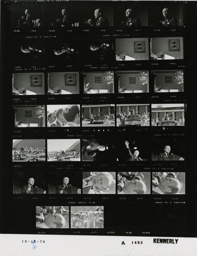| Keywords: Ford A1450 NLGRF photo contact sheet (1974-10-16)(Gerald Ford Library).jpg White House Photographic Office WHPO is housed at the Gerald R Ford Presidential Library a branch of the National Archives and Records Administration NARA <br/><br/> This file is a 200 dpi photo contact sheet having images from roll of film A1450 of the August 9 1974 - January 20 1977 Gerald R Ford White House Photographic Office Series A0001-A9999 and B0001-B2886 photographs <br/><br/> The date on the photo contact sheet is the date the roll of film was processed not necessarily the date the photographs were taken See table below for additional details 1974-10-16 Gerald R Ford Presidential Library Image http //www fordlibrarymuseum gov/library/whphotos/A1450_NLGRF jpg A1450_NLGRF jpg from http //www fordlibrarymuseum gov/library/whphotos/19741016whpo pdf White House Photographs October 16 1974 of the http //www fordlibrarymuseum gov/Library/whphotos/whpo asp White House Photographic Collection page White House Photographic Office WHPO <br/> Creator David Hume Kennerly PD-USGov Institution Institution Gerald R Ford Presidential Library Table wikitable sortable + Photo contact sheet A1450 U S President Ford Administration Gerald R Ford Library Frame s Tone Subject proper Subject generic Names Geographic Location Photographer Date - 4-5 BW Missouri Republican Fundraising Breakfast - Kansas City Missouri GRF speaking at podium others seated in background GRF Gov Bond Others Kansas City MO Radisson Muehlebach Hotel - Grand Ballroom Kennerly 1974-10-16 - 6-11 BW Missouri Republican Fundraising Breakfast - Kansas City Missouri GRF speaking at podium close-up GRF Kansas City MO Radisson Muehlebach Hotel - Grand Ballroom Kennerly 1974-10-16 - 12-19 BW Trip to Kansas City Missouri seated reading GRF Kansas City MO Radisson Muehlebach Hotel - President's Suite Kennerly 1974-10-16 - 20 BW Trip to Sioux Falls South Dakota standing -Agent obscuring GRF GRF Secret Service Sioux Falls SD Joe Foss Field - Tarmac Kennerly 1974-10-16 - 21-25 BW Trip to Sioux Falls South Dakota GRF in limousine waving; crowd in background limousine moving toward and away from camera GRF Secret Service Crowd Sioux Falls SD South Dakota AAA Headquarters - Outside Kennerly 1974-10-16 - 26-30 BW South Dakota Republican State Central Committee Reception - Sioux Falls South Dakota speaking at podium - waving in second frame GRF Sioux Falls SD Sioux Falls Arena Kennerly 1974-10-16 - 31-34 BW Trip to Sioux Falls South Dakota speaking into microphone - close-up GRF Sioux Falls SD Joe Foss Field - Tarmac Kennerly 1974-10-16 - 35 BW Trip to Sioux Falls South Dakota GRF speaking into microphone; crowd in background GRF Crowd Sioux Falls SD Joe Foss Field - Tarmac Kennerly 1974-10-16 Gerald R Ford Presidential Library and Museum-cooperation PD-USGov Contact sheets by the Ford White House October 1974 Photographs by David Hume Kennerly from 1974 |