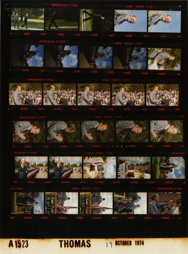 Keywords: Ford A1523 NLGRF photo contact sheet (1974-10-17)(Gerald Ford Library).jpg White House Photographic Office WHPO is housed at the Gerald R Ford Presidential Library a branch of the National Archives and Records Administration NARA <br/><br/> This file is a 200 dpi photo contact sheet having images from roll of film A1523 of the August 9 1974 - January 20 1977 Gerald R Ford White House Photographic Office Series A0001-A9999 and B0001-B2886 photographs <br/><br/> The date on the photo contact sheet is the date the roll of film was processed not necessarily the date the photographs were taken See table below for additional details 1974-10-17 Gerald R Ford Presidential Library Image http //www fordlibrarymuseum gov/library/whphotos/A1523_NLGRF jpg A1523_NLGRF jpg from http //www fordlibrarymuseum gov/library/whphotos/19741017whpo pdf White House Photographs October 17 1974 of the http //www fordlibrarymuseum gov/Library/whphotos/whpo asp White House Photographic Collection page White House Photographic Office WHPO - Thomas PD-USGov Institution Institution Gerald R Ford Presidential Library Table wikitable sortable + Photo contact sheet A1523 U S President Ford Administration Gerald R Ford Library Frame s Tone Subject proper Subject generic Names Geographic Location Photographer Date - 3A Color Following Appearance Before Subcommittee on Criminal Justice walking towards Oval Office smiling GRF Barrett Keiser Sidewalk Between South Driveway and Oval Office Thomas 1974-10-17 - 4A-5A 0 0 Color Following Appearance Before Subcommittee on Criminal Justice Roll A1485 Does Not Exist Roll A1500 Does Not Exist walking towards Oval Office GRF Sidewalk Between South Driveway and Oval Office Thomas 1974-10-17 - 6A-7A Color Arrival for Campaign Trip in South Carolina - Greenville South Carolina smiling -head and shoulder portrait s taken from low angle GRF Greenville SC Greenville/Spart anburg Jet Airport Thomas 1974-10-19 - 8A-9A Color Dedication Ceremony for Anderson Independent and Daily Mail Building -Anderson South Carolina GRF at podium waving GRF Platform Guests Anderson SC Anderson Independent and Daily Mail Building -Outside Thomas 1974-10-19 - 10A-11A Color Dedication Ceremony for Anderson Independent and Daily Mail Building -Anderson South Carolina GRF speaking at podium GRF Platform Guests Anderson SC Anderson Independent and Daily Mail Building -Outside Thomas 1974-10-19 - 12A-17A Color Dedication Ceremony for Anderson Independent and Daily Mail Building -Anderson South Carolina GRF speaking at podium gesturing; crowd in background GRF Crowd Anderson SC Anderson Independent and Daily Mail Building -Outside Thomas 1974-10-19 - 18A-22A Color Dedication Ceremony for Anderson Independent and Daily Mail Building -Anderson South Carolina speaking at podium gesturing GRF Anderson SC Anderson Independent and Daily Mail Building -Outside Thomas 1974-10-19 - 23A-26A Color Dedication Ceremony for Anderson Independent and Daily Mail Building -Anderson South Carolina GRF and Guests in background; agents in foreground GRF Platform Guests Secret Service Anderson SC Anderson Independent and Daily Mail Building -Outside Thomas 1974-10-19 - 27A-30A Color Dedication Ceremony for Anderson Independent and Daily Mail Building -Anderson South Carolina GRF at podium speaking back to camera; crowd in background GRF Crowd Anderson SC Anderson Independent and Daily Mail Building -Outside Thomas 1974-10-19 - 31A Color Dedication Ceremony for Anderson Independent and Daily Mail Building -Anderson South Carolina handshaking GRF Platform Guest Anderson SC Anderson Independent and Daily Mail Building -Outside Thomas 1974-10-19 - 32A Color Dedication Ceremony for Anderson Independent and Daily Mail Building -Anderson South Carolina greeting handshaking GRF Crowd Anderson SC Anderson Independent and Daily Mail Building -Outside Thomas 1974-10-19 Gerald R Ford Presidential Library and Museum-cooperation PD-USGov Contact sheets by the Ford White House October 1974 |
