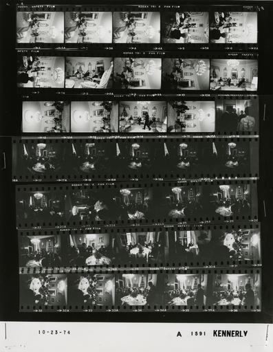 Keywords: Ford A1591 NLGRF photo contact sheet (1974-10-23)(Gerald Ford Library).jpg White House Photographic Office WHPO is housed at the Gerald R Ford Presidential Library a branch of the National Archives and Records Administration NARA <br/><br/> This file is a 200 dpi photo contact sheet having images from roll of film A1591 of the August 9 1974 - January 20 1977 Gerald R Ford White House Photographic Office Series A0001-A9999 and B0001-B2886 photographs <br/><br/> The date on the photo contact sheet is the date the roll of film was processed not necessarily the date the photographs were taken See table below for additional details 1974-10-23 Gerald R Ford Presidential Library Image http //www fordlibrarymuseum gov/library/whphotos/A1591_NLGRF jpg A1591_NLGRF jpg from http //www fordlibrarymuseum gov/library/whphotos/19741023whpo pdf White House Photographs October 23 1974 of the http //www fordlibrarymuseum gov/Library/whphotos/whpo asp White House Photographic Collection page White House Photographic Office WHPO <br/> Creator David Hume Kennerly PD-USGov Institution Institution Gerald R Ford Presidential Library Table wikitable sortable + Photo contact sheet A1591 U S President Ford Administration Gerald R Ford Library Frame s Tone Subject proper Subject generic Names Geographic Location Photographer Date - 2-13 BW Prior to Dinner in Honor of Haig Commander-Designate of NATO Forces seated talking - various angles and distances; formal wear GRF Betty Ford Gen Mrs Haig Second Floor - Yellow Oval Room Kennerly 1974-10-23 - 14-15 BW Prior to Dinner in Honor of Haig Commander-Designate of NATO Forces seated talking; Waiter walking serving coffee; formal wear GRF Betty Ford Gen Mrs Haig; White House Waiter Second Floor - Yellow Oval Room Kennerly 1974-10-23 - 16 BW Reception Prior to Dinner in Honor of Haig Commander-Designate of NATO Forces standing talking; Haig and BF's back to camera; formal wear GRF Betty Ford Gen Mrs Haig Green Room Kennerly 1974-10-23 - 17-33 BW Dinner in Honor of Haig Commander-Designate of NATO Forces - Mother Children Siblings and In-Laws of Gen Haig seated around small tables eating -all not in every frame; formal wear GRF Betty Ford Gen Mrs Haig; Ash Armstrong Buchen Burch Marsh Rumsfeld Callaway Colby Timmons Lt Gen Fox Lt Col Fox Regina Haig; Alexander Barbara Brian Haig; Rev Franklin Haig Mr Mrs Edward Meredith spouses Others Red Room Kennerly 1974-10-23 - 34-36 BW Dinner in Honor of Haig Commander-Designate of NATO Forces - Mother Children Siblings and In-Laws of Gen Haig Haig standing speaking; others seated around small tables - all not in every frame; formal wear GRF Betty Ford Gen Mrs Haig; Ash Armstrong Buchen Burch Marsh Rumsfeld Callaway Colby Timmons Lt Gen Fox Lt Col Fox Regina Haig; Alexander Barbara Brian Haig; Rev Franklin Haig Mr Mrs Edward Meredith spouses Others Red Room Kennerly 1974-10-23 Gerald R Ford Presidential Library and Museum-cooperation PD-USGov Contact sheets by the Ford White House October 1974 Photographs by David Hume Kennerly from 1974