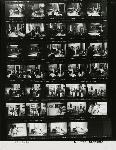 | Keywords: Ford A1593 NLGRF photo contact sheet (1974-10-23)(Gerald Ford Library).jpg White House Photographic Office WHPO is housed at the Gerald R Ford Presidential Library a branch of the National Archives and Records Administration NARA <br/><br/> This file is a 200 dpi photo contact sheet having images from roll of film A1593 of the August 9 1974 - January 20 1977 Gerald R Ford White House Photographic Office Series A0001-A9999 and B0001-B2886 photographs <br/><br/> The date on the photo contact sheet is the date the roll of film was processed not necessarily the date the photographs were taken See table below for additional details 1974-10-23 Gerald R Ford Presidential Library Image http //www fordlibrarymuseum gov/library/whphotos/A1593_NLGRF jpg A1593_NLGRF jpg from http //www fordlibrarymuseum gov/library/whphotos/19741023whpo pdf White House Photographs October 23 1974 of the http //www fordlibrarymuseum gov/Library/whphotos/whpo asp White House Photographic Collection page White House Photographic Office WHPO <br/> Creator David Hume Kennerly PD-USGov Institution Institution Gerald R Ford Presidential Library Table wikitable sortable + Photo contact sheet A1593 U S President Ford Administration Gerald R Ford Library Frame s Tone Subject proper Subject generic Names Geographic Location Photographer Date - 3A-6A BW Dinner in Honor of Haig Commander-Designate of NATO Forces seated talking around table -all not in every frame; formal wear GRF Patricia Haig Rockefeller Buchen Others Red Room Kennerly 1974-10-23 - 7A BW Dinner in Honor of Haig Commander-Designate of NATO Forces GRF standing making toast; others seated around table; formal wear GRF Patricia Haig Buchen Others Red Room Kennerly 1974-10-23 - 8A-12A BW Dinner in Honor of Haig Commander-Designate of NATO Forces - Mother Children Siblings and In-Laws of Gen Haig GRF standing making toast; others seated around tables - all not in every frame; formal wear GRF Betty Ford Gen Mrs Haig; Ash Armstrong Buchen Burch Marsh Rumsfeld Callaway Colby Timmons Lt Gen Fox Lt Col Fox Regina Haig; Alexander Barbara Brian Haig; Rev Franklin Haig Mr Mrs Edward Meredith spouses Others Red Room Kennerly 1974-10-23 - 13A BW Dinner in Honor of Haig Commander-Designate of NATO Forces seated around table listening to GRF; formal wear Rumsfeld Haig Others Red Room Kennerly 1974-10-23 - 14A-15A BW Dinner in Honor of Haig Commander-Designate of NATO Forces Haig seated; others standing raising glasses; formal wear Rumsfeld Haig Others Red Room Kennerly 1974-10-23 - 16A-19A BW Dinner in Honor of Haig Commander-Designate of NATO Forces Haig standing responding to toast; others seated; formal wear Haig Betty Ford Rumsfeld Red Room Kennerly 1974-10-23 - 20A BW Dinner in Honor of Haig Commander-Designate of NATO Forces seated listening to Haig; formal wear GRF Patricia Haig Rockefeller Buchen Colby Others Red Room Kennerly 1974-10-23 - 21A-22A BW Dinner in Honor of Haig Commander-Designate of NATO Forces - Sons of Haig standing talking; formal wear Haig Brian Haig Todd Alexander Haig Red Room Kennerly 1974-10-23 - 23A-29A BW Entertainment Following Dinner in Honor of Haig Commander-Designate of NATO Forces GRF introducing group - all not in every frame; formal wear GRF USMA Glee Club Quartet Others Blue Room Kennerly 1974-10-23 - 30A-34A BW Pet Golden Retriever Susan lying on bed talking on telephone; dog lying on floor nearby Susan Ford Liberty Third Floor - Susan's Bedroom Kennerly 1974-10-23 - 1A-2A BW Dinner in Honor of Haig Commander-Designate of NATO Forces Haig shaking hands with Joyce Rumsfeld; formal wear Haig Donald Joyce Rumsfeld Red Room Kennerly 1974-10-23 Gerald R Ford Presidential Library and Museum-cooperation PD-USGov Contact sheets by the Ford White House October 1974 Photographs by David Hume Kennerly from 1974 |