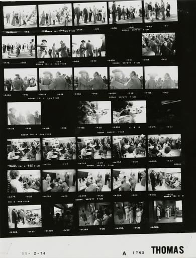 | Keywords: Ford A1743 NLGRF photo contact sheet (1974-11-02)(Gerald Ford Library).jpg White House Photographic Office WHPO is housed at the Gerald R Ford Presidential Library a branch of the National Archives and Records Administration NARA <br/><br/> This file is a 200 dpi photo contact sheet having images from roll of film A1743 of the August 9 1974 - January 20 1977 Gerald R Ford White House Photographic Office Series A0001-A9999 and B0001-B2886 photographs <br/><br/> The date on the photo contact sheet is the date the roll of film was processed not necessarily the date the photographs were taken See table below for additional details 1974-11-02 Gerald R Ford Presidential Library Image http //www fordlibrarymuseum gov/library/whphotos/A1743_NLGRF jpg A1743_NLGRF jpg from http //www fordlibrarymuseum gov/library/whphotos/19741102whpo pdf White House Photographs November 2 1974 of the http //www fordlibrarymuseum gov/Library/whphotos/whpo asp White House Photographic Collection page White House Photographic Office WHPO - Thomas PD-USGov Institution Institution Gerald R Ford Presidential Library Table wikitable sortable + Photo contact sheet A1743 U S President Ford Administration Gerald R Ford Library Frame s Tone Subject proper Subject generic Names Geographic Location Photographer Date - 3-8 BW Arrival for Campaign Rally for Mayor Garn -Salt Lake City Utah greeting handshaking GRF Welcoming Committee Salt Lake City UT Utah International Airport Thomas 1974-11-02 - 9-10 BW Arrival for Campaign Rally for Mayor Garn; Sons of GRF - Salt Lake City Utah greeting handshaking; Steve wearing cowboy hat GRF Jack Ford Steve Ford Salt Lake City UT Utah International Airport Thomas 1974-11-02 - 11 BW Thomas 1974-11-02 - 12 BW Arrival for Campaign Rally for Mayor Garn; Candidate for United States Senate from Utah; Sons of GRF - Salt Lake City Utah standing talking; GRF trying on cowboy hat GRF Jack Ford Steve Ford Mayor Mrs Garn Others Salt Lake City UT Utah International Airport Thomas 1974-11-02 - 13-18 BW Arrival for Campaign Rally for Mayor Garn; Candidate for United States Senate from Utah; Sons of GRF - Salt Lake City Utah standing talking; Steve wearing cowboy hat GRF Jack Ford Steve Ford Mayor Garn Others Salt Lake City UT Utah International Airport Thomas 1974-11-02 - 19 BW Thomas 1974-11-02 - 20-21 BW Arrival Prior to Tour of Center - Salt Lake City Utah greeting handshaking signing autograph GRF Crowd Salt Lake City UT Columbus Community Center -Outside Thomas 1974-11-02 - 22 BW Salt Lake City UT Columbus Community Center Thomas 1974-11-02 - 23-33 BW Tour of Center - Salt Lake City Utah GRF standing students seated GRF Students Faculty Salt Lake City UT Columbus Community Center -Developmental Learning Room Thomas 1974-11-02 - 34-37 BW Tour of Center - Salt Lake City Utah standing talking in corridor Women Faculty Salt Lake City UT Columbus Community Center Thomas 1974-11-02 Gerald R Ford Presidential Library and Museum-cooperation PD-USGov Contact sheets by the Ford White House November 1974 |