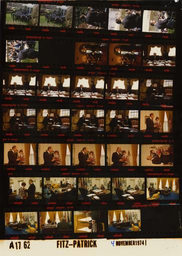| Keywords: Ford A1762 NLGRF photo contact sheet (1974-11-04)(Gerald Ford Library).jpg White House Photographic Office WHPO is housed at the Gerald R Ford Presidential Library a branch of the National Archives and Records Administration NARA <br/><br/> This file is a 200 dpi photo contact sheet having images from roll of film A1762 of the August 9 1974 - January 20 1977 Gerald R Ford White House Photographic Office Series A0001-A9999 and B0001-B2886 photographs <br/><br/> The date on the photo contact sheet is the date the roll of film was processed not necessarily the date the photographs were taken See table below for additional details 1974-11-04 Gerald R Ford Presidential Library Image http //www fordlibrarymuseum gov/library/whphotos/A1762_NLGRF jpg A1762_NLGRF jpg from http //www fordlibrarymuseum gov/library/whphotos/19741104whpo pdf White House Photographs November 4 1974 of the http //www fordlibrarymuseum gov/Library/whphotos/whpo asp White House Photographic Collection page White House Photographic Office WHPO - Fitz-Patrick PD-USGov Institution Institution Gerald R Ford Presidential Library Table wikitable sortable + Photo contact sheet A1762 U S President Ford Administration Gerald R Ford Library Frame s Tone Subject proper Subject generic Names Geographic Location Photographer Date - 4-5 Color Daily Press Briefing Nessen at podium speaking; media standing; taken from West Wing roof Nessen Media Rose Garden Fitz-Patrick 1974-11-04 - 6-9 Color Daily Press Briefing Nessen at podium speaking; media standing; close up taken from behind Nessen Nessen Media Rose Garden Fitz-Patrick 1974-11-04 - 10 Color Fitz-Patrick 1974-11-04 - 11-12 Color Display of Space Crystal Grown Aboard Skylab in 1974 - Administrator National Aeronautics and Space Administration NASA Fletcher standing speaking near table James Fletcher Media Cabinet Room Fitz-Patrick 1974-11-04 - 13-17 Color Photo Opportunity Ash seated at table Staffer leaning on table; documents cover table Ash Staffer Executive Office Building - Office of Management and Budget Fitz-Patrick 1974-11-04 - 18-22 Color Photo Opportunity seated on chairs; looking at documents Ash Staffer Executive Office Building - Office of Management and Budget Fitz-Patrick 1974-11-04 - 23-28 Color Photo Opportunity - 1974-75 Poster Child for the Epilepsy Foundation of America standing GRF holding football GRF Brian Molloy Oval Office Fitz-Patrick 1974-11-04 - 29 Color Photo Opportunity - 1974-75 Poster Child for the Epilepsy Foundation of America standing GRF pinning button on boy's lapel GRF Brian Molloy Oval Office Fitz-Patrick 1974-11-04 - 30-37 Color Meeting with 1974-75 Poster Child for the Epilepsy Foundation of America - Parents Executive Vice President Epilepsy Foundation of America seated around desk talking; various angles and distances; all not in every frame GRF Brian Molloy Mr Mrs Molloy Paul Funk Oval Office Fitz-Patrick 1974-11-04 Gerald R Ford Presidential Library and Museum-cooperation PD-USGov Contact sheets by the Ford White House November 1974 |