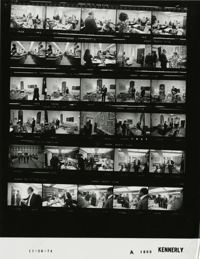 Keywords: Ford A1809 NLGRF photo contact sheet (1974-11-06)(Gerald Ford Library).jpg White House Photographic Office WHPO is housed at the Gerald R Ford Presidential Library a branch of the National Archives and Records Administration NARA <br/><br/> This file is a 200 dpi photo contact sheet having images from roll of film A1809 of the August 9 1974 - January 20 1977 Gerald R Ford White House Photographic Office Series A0001-A9999 and B0001-B2886 photographs <br/><br/> The date on the photo contact sheet is the date the roll of film was processed not necessarily the date the photographs were taken See table below for additional details 1974-11-06 Gerald R Ford Presidential Library Image http //www fordlibrarymuseum gov/library/whphotos/A1809_NLGRF jpg A1809_NLGRF jpg from http //www fordlibrarymuseum gov/library/whphotos/19741106whpo pdf White House Photographs November 6 1974 of the http //www fordlibrarymuseum gov/Library/whphotos/whpo asp White House Photographic Collection page White House Photographic Office WHPO <br/> Creator David Hume Kennerly PD-USGov Institution Institution Gerald R Ford Presidential Library Table wikitable sortable + Photo contact sheet A1809 U S President Ford Administration Gerald R Ford Library Frame s Tone Subject proper Subject generic Names Geographic Location Photographer Date - 2A-4A BW Presidential Tour of Old Executive Office Building greeting handshaking standing talking - all not in every frame see sheet GRF Clara Hyatt Ann Bradshaw Avis Queen Charlene Volpe Pauline Dufresne Gail Marsh Grace Jones Mildred Donaldson Gail Marsh Helen Williams Ellen Strichartz Rachel Saunders Janet Curtis Sharon Stewart Old Executive Office Building OEOB -Correspondence Kennerly 1974-11-06 - 5A-6A BW Presidential Tour of Old Executive Office Building greeting handshaking standing talking GRF Barbara Lyle Frances Wessel Charlene Baer Rachel Saunders Sharon Stewart Barbara Riegner Old Executive Office Building OEOB -Correspondence Kennerly 1974-11-06 - 7A-9A BW Presidential Tour of Old Executive Office Building greeting handshaking standing talking - all not in every frame see sheet GRF Mary Derszer Annita Holland Linda Clawson Amelia Houston Virginia Tyndall James Collier Elsie Brookshier Lorraine Royster Elisa Surrusco Clara Hyatt Maureen Hudson C Shackelford C Samaha Alice McPhillips Nick Merlino Robert Anderson Old Executive Office Building OEOB -Correspondence Kennerly 1974-11-06 - 10A BW Presidential Tour of Old Executive Office Building standing talking GRF Unidentified Woman Old Executive Office Building OEOB -Correspondence Kennerly 1974-11-06 - 11A BW Presidential Tour of Old Executive Office Building greeting handshaking GRF Marge Acker Old Executive Office Building OEOB -Correspondence Kennerly 1974-11-06 - 12A-18A BW Presidential Tour of Old Executive Office Building greeting handshaking standing talking GRF Rosemary Woods Old Executive Office Building OEOB -Correspondence Kennerly 1974-11-06 - 19A-21A BW Presidential Tour of Old Executive Office Building standing talking - looking at cartoon in first frame; all not in every frame GRF Rumsfeld O'Donnell Old Executive Office Building OEOB -Vice President's Office Kennerly 1974-11-06 - 22A BW Following Presidential Tour of Old Executive Office Building walking toward West Wing GRF Rumsfeld Secret Service Sidewalk Between Old Executive Office Building OEOB and White House Kennerly 1974-11-06 - 23A-24A BW Presidential Tour of West Wing greeting handshaking standing talking - all not in every frame see sheet GRF Judy Licata Diana Gwin Sara Currence Basement -Staff Secretary's Office Kennerly 1974-11-06 - 25A-26A BW Presidential Tour of West Wing - Deputy Assistant to the President greeting handshaking standing talking GRF Jerry Jones Basement -Staff Secretary's Office Kennerly 1974-11-06 - 27A BW Presidential Tour of West Wing - Deputy Staff Secretary greeting handshaking GRF Hoopes Basement -Staff Secretary's Office Kennerly 1974-11-06 - 28A BW Presidential Tour of West Wing - Secretarial Assistant greeting handshaking GRF Catherine Finley Basement -Office of the Chief Executive Clerk Kennerly 1974-11-06 - 29A-31A BW Presidential Tour of West Wing greeting handshaking standing talking - all not in every frame see sheet GRF Madeline Horton Cornelius Johnson Clarence Hawkins Norman Higginbotham Lawrence Hall Timothy Dundar Addison Wilborn George Parker Valeria Biribin Basement -Messenger Room Kennerly 1974-11-06 Gerald R Ford Presidential Library and Museum-cooperation PD-USGov Contact sheets by the Ford White House November 1974 Photographs by David Hume Kennerly from 1974 |