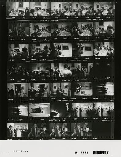 | Keywords: Ford A1882 NLGRF photo contact sheet (1974-11-12)(Gerald Ford Library).jpg White House Photographic Office WHPO is housed at the Gerald R Ford Presidential Library a branch of the National Archives and Records Administration NARA <br/><br/> This file is a 200 dpi photo contact sheet having images from roll of film A1882 of the August 9 1974 - January 20 1977 Gerald R Ford White House Photographic Office Series A0001-A9999 and B0001-B2886 photographs <br/><br/> The date on the photo contact sheet is the date the roll of film was processed not necessarily the date the photographs were taken See table below for additional details 1974-11-12 Gerald R Ford Presidential Library Image http //www fordlibrarymuseum gov/library/whphotos/A1882_NLGRF jpg A1882_NLGRF jpg from http //www fordlibrarymuseum gov/library/whphotos/19741112whpo pdf White House Photographs November 12 1974 of the http //www fordlibrarymuseum gov/Library/whphotos/whpo asp White House Photographic Collection page White House Photographic Office WHPO <br/> Creator David Hume Kennerly PD-USGov Institution Institution Gerald R Ford Presidential Library Table wikitable sortable + Photo contact sheet A1882 U S President Ford Administration Gerald R Ford Library Frame s Tone Subject proper Subject generic Names Geographic Location Photographer Date - 3-4 BW State Dinner for the Chancellor of the Federal Republic of Austria GRF and guests seated; talking dining - Waiters serving Maitre d' John Ficklin in second frame; formal wear GRF Betty Ford Bruno Kreisky Constance Halusa White House Waiters Guests State Dining Room Kennerly 1974-11-12 - 5-7 BW State Dinner for Bruno Kreisky Chancellor of the Federal Republic of Austria seated talking dining; formal wear Guests State Dining Room Kennerly 1974-11-12 - 8 BW State Dinner for Bruno Kreisky Chancellor of the Federal Republic of Austria seated talking - one man on step ladder holding camera; formal wear Secret Service Others Red Room Kennerly 1974-11-12 - 9-11 BW State Dinner for the Chancellor of the Federal Republic of Austria GRF and guests seated; talking dining; formal wear GRF Betty Ford Bruno Kreisky Constance Halusa Guests State Dining Room Kennerly 1974-11-12 - 12-16 BW State Dinner for the Chancellor of the Federal Republic of Austria GRF and guests seated; talking dining - Musician playing violin in foreground; formal wear GRF Betty Ford Bruno Kreisky Constance Halusa Guests Strolling Musician State Dining Room Kennerly 1974-11-12 - 17-18 BW State Dinner for Bruno Kreisky Chancellor of the Federal Republic of Austria seated; talking dining; formal wear Guests State Dining Room Kennerly 1974-11-12 - 19 BW State Dinner for the Chancellor of the Federal Republic of Austria GRF standing offering toast; others seated - long shot from across room; formal wear GRF Betty Ford Bruno Kreisky Constance Halusa Guests State Dining Room Kennerly 1974-11-12 - 20 BW State Dinner for the Chancellor of the Federal Republic of Austria Kreisky standing offering toast; others seated - partially obstructed; formal wear GRF Betty Ford Bruno Kreisky Guests State Dining Room Kennerly 1974-11-12 - 21-24 BW State Dinner for the Chancellor of the Federal Republic of Austria GRF introducing Susan; handshaking - frame 22 very dark; formal wear GRF Susan Ford Bruno Kreisky Entrance Hall/Grand Hall/Grand Foyer Kennerly 1974-11-12 - 25-26 BW Reception Following the State Dinner for the Chancellor of the Federal Republic of Austria standing talking; holding cups and saucers; formal wear GRF Bruno Kreisky Blue Room Kennerly 1974-11-12 - 27-33 BW Entertainment Following the State Dinner for Bruno Kreisky Chancellor of the Federal Republic of Austria Guests in foreground standing in East Room Doorway; GRF on stage in background introducing entertainment - various angles; formal wear GRF Guests Cross Hall Kennerly 1974-11-12 - 34-36 BW Following the State Dinner for Bruno Kreisky Chancellor of the Federal Republic of Austria standing talking; formal wear Howe Weidenfeld Red Room Kennerly 1974-11-12 Gerald R Ford Presidential Library and Museum-cooperation PD-USGov Contact sheets by the Ford White House November 1974 Photographs by David Hume Kennerly from 1974 |