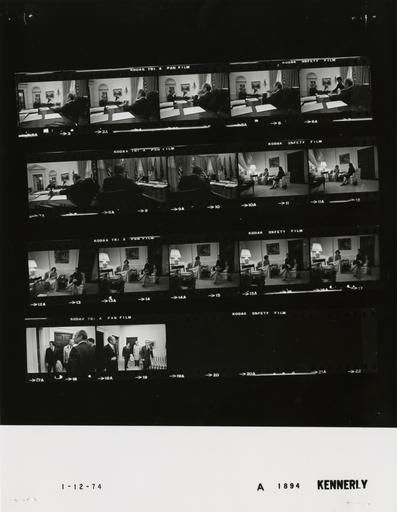 Keywords: Ford A1894 NLGRF photo contact sheet (1974-11-12)(Gerald Ford Library).jpg White House Photographic Office WHPO is housed at the Gerald R Ford Presidential Library a branch of the National Archives and Records Administration NARA <br/><br/> This file is a 200 dpi photo contact sheet having images from roll of film A1894 of the August 9 1974 - January 20 1977 Gerald R Ford White House Photographic Office Series A0001-A9999 and B0001-B2886 photographs <br/><br/> The date on the photo contact sheet is the date the roll of film was processed not necessarily the date the photographs were taken See table below for additional details 1974-11-12 Gerald R Ford Presidential Library Image http //www fordlibrarymuseum gov/library/whphotos/A1894_NLGRF jpg A1894_NLGRF jpg from http //www fordlibrarymuseum gov/library/whphotos/19741112whpo pdf White House Photographs November 12 1974 of the http //www fordlibrarymuseum gov/Library/whphotos/whpo asp White House Photographic Collection page White House Photographic Office WHPO <br/> Creator David Hume Kennerly PD-USGov Institution Institution Gerald R Ford Presidential Library Table wikitable sortable + Photo contact sheet A1894 U S President Ford Administration Gerald R Ford Library Frame s Tone Subject proper Subject generic Names Geographic Location Photographer Date - 3-8 BW Vice President-designate seated around desk talking; White House Steward serving coffee in frame 7 GRF Rockefeller Oval Office Kennerly 1974-11-12 - 9-10 BW Vice President-designate seated around desk talking; Rockefeller's back to camera GRF Rockefeller Oval Office Kennerly 1974-11-12 - 11-17 BW Wife of the Vice President-designate seated talking Betty Ford Happy Rockefeller Second Floor - West Sitting Hall Kennerly 1974-11-12 - 18 BW Vice President-designate Rockefeller's Press Agent standing talking smiling; Secret Service in background GRF O'Donnell Press Agent Secret Service Scheduling and Advance Office Kennerly 1974-11-12 - 19 BW Vice President-designate; Press Agent walking across room GRF Rockefeller O'Donnell Press Agent Secret Service Scheduling and Advance Office Kennerly 1974-11-12 Gerald R Ford Presidential Library and Museum-cooperation PD-USGov Contact sheets by the Ford White House November 1974 Photographs by David Hume Kennerly from 1974 |