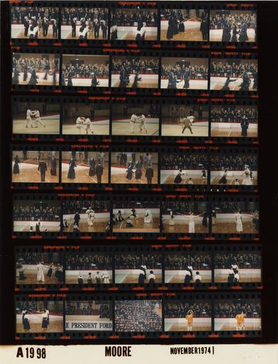 | Keywords: Ford A1998 NLGRF photo contact sheet (1974-11-20)(Gerald Ford Library).jpg White House Photographic Office WHPO is housed at the Gerald R Ford Presidential Library a branch of the National Archives and Records Administration NARA <br/><br/> This file is a 200 dpi photo contact sheet having images from roll of film A1998 of the August 9 1974 - January 20 1977 Gerald R Ford White House Photographic Office Series A0001-A9999 and B0001-B2886 photographs <br/><br/> The date on the photo contact sheet is the date the roll of film was processed not necessarily the date the photographs were taken See table below for additional details 1974-11-20 Gerald R Ford Presidential Library Image http //www fordlibrarymuseum gov/library/whphotos/A1998_NLGRF jpg A1998_NLGRF jpg from http //www fordlibrarymuseum gov/library/whphotos/19741120whpo pdf White House Photographs November 20 1974 of the http //www fordlibrarymuseum gov/Library/whphotos/whpo asp White House Photographic Collection page White House Photographic Office WHPO - Moore PD-USGov Institution Institution Gerald R Ford Presidential Library Table wikitable sortable + Photo contact sheet A1998 U S President Ford Administration Gerald R Ford Library Frame s Tone Subject proper Subject generic Names Geographic Location Photographer Date - 2A-4A Color Trip to Japan - 1st Visit to Japan by Sitting U S President - Exhibition of Traditional and Modern Japanese Athletics - Local Time GRF walking on Arena floor greeting handshaking; GRF seated in frame 4A GRF Athletes Crowd Tokyo Japan Budokan Sports Arena Moore 1974-11-20 - 5A-32A Color Trip to Japan - 1st Visit to Japan by Sitting U S President - Exhibition of Traditional and Modern Japanese Athletics - Local Time Athletes demonstrating various martial arts; others seated - GRF and crowd not in every frame GRF Athletes Crowd Tokyo Japan Budokan Sports Arena Moore 1974-11-20 - 33A-34A Color Trip to Japan - 1st Visit to Japan by Sitting U S President - Exhibition of Traditional and Modern Japanese Athletics - Local Time seated watching Crowd Tokyo Japan Budokan Sports Arena Moore 1974-11-20 - 35A-36A Color Trip to Japan - 1st Visit to Japan by Sitting U S President - Exhibition of Traditional and Modern Japanese Athletics - Local Time GRF and others seated in background watching volleyball match; athletes in foreground GRF Athletes Crowd Tokyo Japan Budokan Sports Arena Moore 1974-11-20 Gerald R Ford Presidential Library and Museum-cooperation PD-USGov Contact sheets by the Ford White House November 1974 |