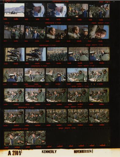| Keywords: Ford A2109 NLGRF photo contact sheet (1974-11-22)(Gerald Ford Library).jpg White House Photographic Office WHPO is housed at the Gerald R Ford Presidential Library a branch of the National Archives and Records Administration NARA <br/><br/> This file is a 200 dpi photo contact sheet having images from roll of film A2109 of the August 9 1974 - January 20 1977 Gerald R Ford White House Photographic Office Series A0001-A9999 and B0001-B2886 photographs <br/><br/> The date on the photo contact sheet is the date the roll of film was processed not necessarily the date the photographs were taken See table below for additional details 1974-11-22 Gerald R Ford Presidential Library Image http //www fordlibrarymuseum gov/library/whphotos/A2109_NLGRF jpg A2109_NLGRF jpg from http //www fordlibrarymuseum gov/library/whphotos/19741122whpo pdf White House Photographs November 22 1974 of the http //www fordlibrarymuseum gov/Library/whphotos/whpo asp White House Photographic Collection page White House Photographic Office WHPO - Thomas PD-USGov Institution Institution Gerald R Ford Presidential Library Table wikitable sortable + Photo contact sheet A2109 U S President Ford Administration Gerald R Ford Library Frame s Tone Subject proper Subject generic Names Geographic Location Photographer Date - 2A Color Trip to the Republic of Korea - Arrival for Visit with Troops of the U S 2nd Division - Local Time getting out of helicopter - long shot GRF Keiser Others Camp Casey South Korea Indianhead Field Thomas 1974-11-22 - 3A-4A Color Trip to the Republic of Korea - Visit with Troops of the U S 2nd Division - Local Time head and shoulder portrait s Unidentified Marine Corps Lt Col Camp Casey South Korea Camp Casey Thomas 1974-11-22 - 5A-8A Color Trip to the Republic of Korea - Visit with Troops of the U S 2nd Division - Local Time greeting handshaking waving smiling GRF Troops Secret Service Camp Casey South Korea Camp Casey Thomas 1974-11-22 - 9A-13A Color Trip to the Republic of Korea - Visit with Troops of the U S 2nd Division - Local Time standing walking - GRF wearing snorkel coat with fur trimmed hood -various angles and distances GRF Others Camp Casey South Korea Camp Casey Thomas 1974-11-22 - 14A Color Trip to the Republic of Korea - Visit with Troops of the U S 2nd Division; Commanding General - Local Time talking walking across bridge - GRF wearing snorkel coat with fur trimmed hood GRF Maj Gen Henry Emerson Keiser Secret Service Others Camp Casey South Korea Camp Casey Thomas 1974-11-22 - 15A-19A Color Trip to the Republic of Korea - Visit with Troops of the U S 2nd Division - Local Time greeting handshaking -GRF wearing snorkel coat with fur trimmed hood GRF Troops Camp Casey South Korea Field Mess Thomas 1974-11-22 - 20A-33A Color Trip to the Republic of Korea - Visit with Troops of the U S 2nd Division - Local Time standing in chow line eating talking - GRF wearing snorkel coat with fur trimmed hood -various angles and distances GRF Troops Camp Casey South Korea Field Mess Thomas 1974-11-22 Gerald R Ford Presidential Library and Museum-cooperation PD-USGov Contact sheets by the Ford White House November 1974 Fur fashion in 1974 Coyote clothing Fur trimmings |