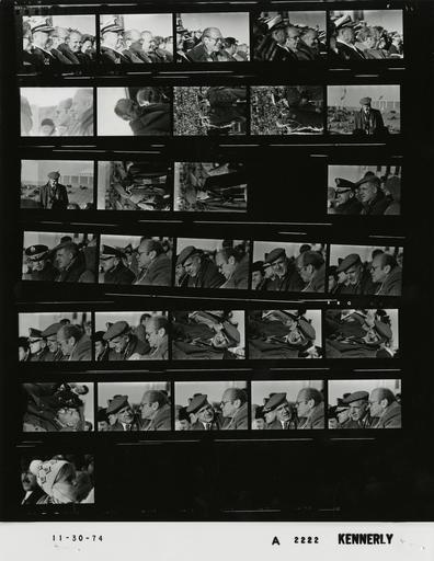 Keywords: Ford A2222 NLGRF photo contact sheet (1974-11-30)(Gerald Ford Library).jpg White House Photographic Office WHPO is housed at the Gerald R Ford Presidential Library a branch of the National Archives and Records Administration NARA <br/><br/> This file is a 200 dpi photo contact sheet having images from roll of film A2222 of the August 9 1974 - January 20 1977 Gerald R Ford White House Photographic Office Series A0001-A9999 and B0001-B2886 photographs <br/><br/> The date on the photo contact sheet is the date the roll of film was processed not necessarily the date the photographs were taken See table below for additional details 1974-11-30 Gerald R Ford Presidential Library Image http //www fordlibrarymuseum gov/library/whphotos/A2222_NLGRF jpg A2222_NLGRF jpg from http //www fordlibrarymuseum gov/library/whphotos/19741130whpo pdf White House Photographs November 30 1974 of the http //www fordlibrarymuseum gov/Library/whphotos/whpo asp White House Photographic Collection page White House Photographic Office WHPO <br/> Creator David Hume Kennerly PD-USGov Institution Institution Gerald R Ford Presidential Library Table wikitable sortable + Photo contact sheet A2222 U S President Ford Administration Gerald R Ford Library Frame s Tone Subject proper Subject generic Names Geographic Location Photographer Date - 2-6 BW 75th Army-Navy Football Game - Naval Academy Superintendent; Secretary of the Navy - Philadelphia Pennsylvania seated on Navy side of field watching game GRF Vice Adm William Mack J William Middendorf Others Philadelphia PA John F Kennedy Stadium Kennerly 1974-11-30 - 7 BW 75th Army-Navy Football Game - Secretary of the Navy - Philadelphia Pennsylvania seated on Navy side of field watching game GRF J William Middendorf Others Philadelphia PA John F Kennedy Stadium Kennerly 1974-11-30 - 8 BW 75th Army-Navy Football Game - Philadelphia Pennsylvania walking toward Fifty Yard Line GRF Keiser Philadelphia PA John F Kennedy Stadium Kennerly 1974-11-30 - 9-10 BW 75th Army-Navy Football Game - Captain of Corps of Cadets - Philadelphia Pennsylvania standing on fifty yard line - GRF moving from Navy to Army side at halftime GRF Capt James Abcouwer Philadelphia PA John F Kennedy Stadium Kennerly 1974-11-30 - 11-14 BW 75th Army-Navy Football Game - Philadelphia Pennsylvania standing in stands - wearing beret Schlesinger Philadelphia PA John F Kennedy Stadium Kennerly 1974-11-30 - 15 BW Philadelphia PA John F Kennedy Stadium Kennerly 1974-11-30 - 16-23 BW 75th Army-Navy Football Game - West Point Superintendent - Philadelphia Pennsylvania seated in stands - Schlesinger wearing beret; all not in every frame GRF Schlesinger Maj Gen Sidney Berry Philadelphia PA John F Kennedy Stadium Kennerly 1974-11-30 - 24-27 BW 75th Army-Navy Football Game - Philadelphia Pennsylvania seated in stands - wearing beret Schlesinger Philadelphia PA John F Kennedy Stadium Kennerly 1974-11-30 - 28-31 BW 75th Army-Navy Football Game - Philadelphia Pennsylvania seated in stands - Schlesinger wearing beret GRF Schlesinger Philadelphia PA John F Kennedy Stadium Kennerly 1974-11-30 - 32 BW 75th Army-Navy Football Game - Philadelphia Pennsylvania seated in stands - covered by scarf Unidentified Young Girl Philadelphia PA John F Kennedy Stadium Kennerly 1974-11-30 Gerald R Ford Presidential Library and Museum-cooperation PD-USGov Contact sheets by the Ford White House November 1974 Photographs by David Hume Kennerly from 1974 |