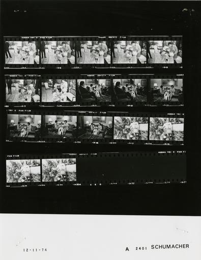 | Keywords: Ford A2401 NLGRF photo contact sheet (1974-12-11)(Gerald Ford Library).jpg White House Photographic Office WHPO is housed at the Gerald R Ford Presidential Library a branch of the National Archives and Records Administration NARA <br/><br/> This file is a 200 dpi photo contact sheet having images from roll of film A2401 of the August 9 1974 - January 20 1977 Gerald R Ford White House Photographic Office Series A0001-A9999 and B0001-B2886 photographs <br/><br/> The date on the photo contact sheet is the date the roll of film was processed not necessarily the date the photographs were taken See table below for additional details 1974-12-11 Gerald R Ford Presidential Library Image http //www fordlibrarymuseum gov/library/whphotos/A2401_NLGRF jpg A2401_NLGRF jpg from http //www fordlibrarymuseum gov/library/whphotos/19741211whpo pdf White House Photographs December 11 1974 of the http //www fordlibrarymuseum gov/Library/whphotos/whpo asp White House Photographic Collection page White House Photographic Office WHPO - Schumacher PD-USGov Institution Institution Gerald R Ford Presidential Library Table wikitable sortable + Photo contact sheet A2401 U S President Ford Administration Gerald R Ford Library Frame s Tone Subject proper Subject generic Names Geographic Location Photographer Date - 4-10 BW March of Dimes Poster Child - Mother greeting talking - Mrs Ford stooping holding doll Betty Ford Jamie Weaver Brenda Weaver Ground Floor -Map Room Schumacher 1974-12-11 - 11-16 BW March of Dimes Poster Child - Mother; President March of Dimes; Poster Child Escort seated on couch talking - Nee and Thorner in some frames Betty Ford Jamie Weaver Brenda Weaver; Joseph Nee Everett Thorner Ground Floor -Map Room Schumacher 1974-12-11 - 17-20 BW standing in front of Christmas tree; holding plaque from the 2nd Division Betty Ford Blue Room Schumacher 1974-12-11 Gerald R Ford Presidential Library and Museum-cooperation PD-USGov Contact sheets by the Ford White House December 1974 |