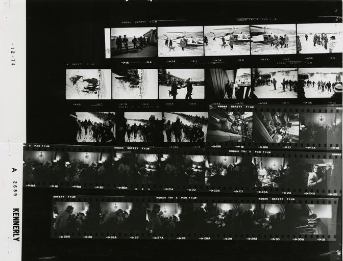| Keywords: Ford A2639 NLGRF photo contact sheet (1974-12-22)(Gerald Ford Library).jpg White House Photographic Office WHPO is housed at the Gerald R Ford Presidential Library a branch of the National Archives and Records Administration NARA <br/><br/> This file is a 200 dpi photo contact sheet having images from roll of film A2639 of the August 9 1974 - January 20 1977 Gerald R Ford White House Photographic Office Series A0001-A9999 and B0001-B2886 photographs <br/><br/> The date on the photo contact sheet is the date the roll of film was processed not necessarily the date the photographs were taken See table below for additional details 1974-12-22 Gerald R Ford Presidential Library Image http //www fordlibrarymuseum gov/library/whphotos/A2639_NLGRF jpg A2639_NLGRF jpg from http //www fordlibrarymuseum gov/library/whphotos/19741222whpo pdf White House Photographs December 22 1974 of the http //www fordlibrarymuseum gov/Library/whphotos/whpo asp White House Photographic Collection page White House Photographic Office WHPO <br/> Creator David Hume Kennerly PD-USGov Institution Institution Gerald R Ford Presidential Library Table wikitable sortable + Photo contact sheet A2639 U S President Ford Administration Gerald R Ford Library Frame s Tone Subject proper Subject generic Names Geographic Location Photographer Date - 1A BW Arrival for Christmas Vacation Trip to Vail Colorado - Pet Golden Retriever -Grand Junction Colorado walking from Air Force One GRF Betty Ford Mike Gayle Ford Liberty Others Grand Junction CO Walker Field Kennerly 1974-12-22 - 2A-4A BW Arrival for Christmas Vacation Trip to Vail Colorado; Friend of Susan Ford; Pet Golden Retriever - Avon Colorado stepping from helicopter; Susan and Barbara Manfuso in third frame; snow on ground GRF Liberty Avon CO Nottingham Farm Helipad Kennerly 1974-12-22 - 5A-8A BW Arrival for Christmas Vacation Trip to Vail Colorado; Pet Golden Retriever -Avon Colorado greeting handshaking; snow on ground GRF Liberty Others Avon CO Nottingham Farm Helipad Kennerly 1974-12-22 - 9A BW Arrival for Christmas Vacation Trip to Vail Colorado walking towards doorway GRF Vail CO Presidential Vacation Residence - Richard Bass Residence - Outside Kennerly 1974-12-22 - 10A-14A BW Christmas Vacation Trip to Vail Colorado standing on skis talking GRF Others Vail CO Vail Mountain Kennerly 1974-12-22 - 15A-16A BW Christmas Vacation Trip to Vail Colorado - Friend of Steve Ford Steve lying on couch Dee Dee seated on floor nearby Steve Ford Dee Jarvis Vail CO Presidential Vacation Residence - Richard Bass Residence Kennerly 1974-12-23 - 17A-30A BW Buffet Dinner Hosted by Richard Bass During Christmas Vacation Trip to Vail Colorado - Date and Location May Not Be Accurate seated talking moving around room - all not in every frame GRF Betty Ford Rumsfeld Jack Ford Others Vail CO Presidential Vacation Residence - Richard Bass Residence Kennerly 1974-12-23 Gerald R Ford Presidential Library and Museum-cooperation PD-USGov Contact sheets by the Ford White House December 1974 Photographs by David Hume Kennerly from 1974 |