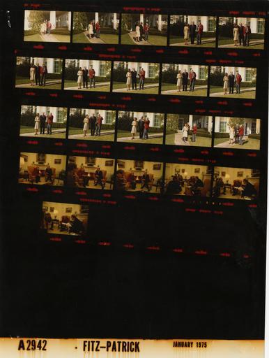 Keywords: Ford A2942 NLGRF photo contact sheet (1975-01-27)(Gerald Ford Library).jpg White House Photographic Office WHPO is housed at the Gerald R Ford Presidential Library a branch of the National Archives and Records Administration NARA <br/><br/> This file is a 200 dpi photo contact sheet having images from roll of film A2942 of the August 9 1974 - January 20 1977 Gerald R Ford White House Photographic Office Series A0001-A9999 and B0001-B2886 photographs <br/><br/> The date on the photo contact sheet is the date the roll of film was processed not necessarily the date the photographs were taken See table below for additional details 1975-01-27 Gerald R Ford Presidential Library Image http //www fordlibrarymuseum gov/library/whphotos/A2942_NLGRF jpg A2942_NLGRF jpg from http //www fordlibrarymuseum gov/library/whphotos/19750127whpo pdf White House Photographs January 27 1975 of the http //www fordlibrarymuseum gov/Library/whphotos/whpo asp White House Photographic Collection page White House Photographic Office WHPO - Fitz-Patrick PD-USGov Institution Institution Gerald R Ford Presidential Library Table wikitable sortable + Photo contact sheet A2942 U S President Ford Administration Gerald R Ford Library Frame s Tone Subject proper Subject generic Names Geographic Location Photographer Date - 2A-16A Color Landscape Photographer standing talking walking GRF Betty Ford Ansel Adams Sidewalk Between Oval Office and South Driveway Fitz-Patrick 1975-01-27 - 17A-22A Color Landscape Photographer; Business Manager seated near fireplace talking - all not in every frame GRF Ansel Adams William Turnage Oval Office Fitz-Patrick 1975-01-27 Gerald R Ford Presidential Library and Museum-cooperation PD-USGov Contact sheets by the Ford White House January 1975 |
