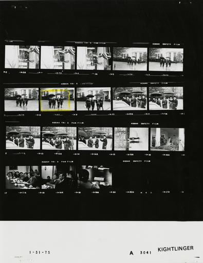 Keywords: Ford A3041 NLGRF photo contact sheet (1975-01-31)(Gerald Ford Library).jpg White House Photographic Office WHPO is housed at the Gerald R Ford Presidential Library a branch of the National Archives and Records Administration NARA <br/><br/> This file is a 200 dpi photo contact sheet having images from roll of film A3041 of the August 9 1974 - January 20 1977 Gerald R Ford White House Photographic Office Series A0001-A9999 and B0001-B2886 photographs <br/><br/> The date on the photo contact sheet is the date the roll of film was processed not necessarily the date the photographs were taken See table below for additional details 1975-01-31 Gerald R Ford Presidential Library Image http //www fordlibrarymuseum gov/library/whphotos/A3041_NLGRF jpg A3041_NLGRF jpg from http //www fordlibrarymuseum gov/library/whphotos/19750131whpo pdf White House Photographs January 31 1975 of the http //www fordlibrarymuseum gov/Library/whphotos/whpo asp White House Photographic Collection page White House Photographic Office WHPO - Kightlinger PD-USGov Institution Institution Gerald R Ford Presidential Library Table wikitable sortable + Photo contact sheet A3041 U S President Ford Administration Gerald R Ford Library Frame s Tone Subject proper Subject generic Names Geographic Location Photographer Date - 2A-14A BW Departure of Prime Minister of Great Britain walking toward limousine; rain under umbrellas; Union Jack in foreground of first three frames GRF Kissinger Harold Wilson Others Sidewalk Between Oval Office and South Driveway Kightlinger 1975-01-31 - 15A BW Following Departure of Prime Minister of Great Britain standing talking handshaking in rain GRF Unidentified Man Sidewalk Between Oval Office and South Driveway Kightlinger 1975-01-31 - 16A BW standing talking outside Oval Office GRF Kennerly Others Colonnade Kightlinger 1975-01-31 - 17A-19A BW Meeting to Discuss Indian Affairs with National Tribal Leaders Native American seated at table; various angles; all not in every frame National Tribal Chairmen Cabinet Room Kightlinger 1975-01-31 Gerald R Ford Presidential Library and Museum-cooperation PD-USGov Contact sheets by the Ford White House January 1975 |