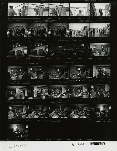 | Keywords: Ford A3090 NLGRF photo contact sheet (1975-02-03)(Gerald Ford Library).jpg White House Photographic Office WHPO is housed at the Gerald R Ford Presidential Library a branch of the National Archives and Records Administration NARA <br/><br/> This file is a 200 dpi photo contact sheet having images from roll of film A3090 of the August 9 1974 - January 20 1977 Gerald R Ford White House Photographic Office Series A0001-A9999 and B0001-B2886 photographs <br/><br/> The date on the photo contact sheet is the date the roll of film was processed not necessarily the date the photographs were taken See table below for additional details 1975-02-03 Gerald R Ford Presidential Library Image http //www fordlibrarymuseum gov/library/whphotos/A3090_NLGRF jpg A3090_NLGRF jpg from http //www fordlibrarymuseum gov/library/whphotos/19750203whpo pdf White House Photographs February 3 1975 of the http //www fordlibrarymuseum gov/Library/whphotos/whpo asp White House Photographic Collection page White House Photographic Office WHPO <br/> Creator David Hume Kennerly PD-USGov Institution Institution Gerald R Ford Presidential Library Table wikitable sortable + Photo contact sheet A3090 U S President Ford Administration Gerald R Ford Library Frame s Tone Subject proper Subject generic Names Geographic Location Photographer Date - 3-5 BW Prior to Departure for Dobbins Air Force Base -Andrews Air Force Base Maryland greeting handshaking on tarmac; Marine One in background GRF Air Force Personnel Andrews Air Force Base MD Andrews Air Force Base Kennerly 1975-02-03 - 6-7 BW Prior to Departure for Dobbins Air Force Base -Andrews Air Force Base Maryland walking up steps to Air Force One; taken from inside aircraft GRF Andrews Air Force Base MD Andrews Air Force Base Kennerly 1975-02-03 - 8-10 BW Flight to Dobbins Air Force Base standing posing Sen Talmadge Others Air Force One Kennerly 1975-02-03 - 11-12 BW Arrival at Dobbins Air Force Base Georgia GRF descending steps in 10; greeting handshaking at base of steps in 11; rain GRF Others Dobbins Air Force Base GA Dobbins Air Force Base Kennerly 1975-02-03 - 13-16 BW Trip to Atlanta Georgia - White House Conference on Domestic and Economic Affairs - Atlanta Georgia standuing applauding in 1213; GRF at lectern speaking in 14-14; various angles and distances; all not in frames GRF Media Atlanta GA Hyatt Regency Hotel - Phoenix Room Kennerly 1975-02-03 - 17-31 BW Trip to Atlanta Georgia - Reception and Working Dinner With Southeastern State Governors and Administration Officials -Atlanta Georgia seated standing talking; various angles; all not in every frame; Wallace in wheelchair GRF Lynn Weinberger George Wallace Governors Others Atlanta GA Hyatt Regency Hotel - Essex A Room Kennerly 1975-02-03 - 32-33 BW Meeting With Southeastern State Governors and Administration Officials -Atlanta Georgia seated talking; all not in frame; Wallace in wheelchair GRF Lynn Weinberger George Wallace Governors Others Atlanta GA Hyatt Regency Hotel - President's Suite Kennerly 1975-02-03 Gerald R Ford Presidential Library and Museum-cooperation PD-USGov Contact sheets by the Ford White House February 1975 Photographs by David Hume Kennerly from 1975 Dobbins Air Reserve Base |