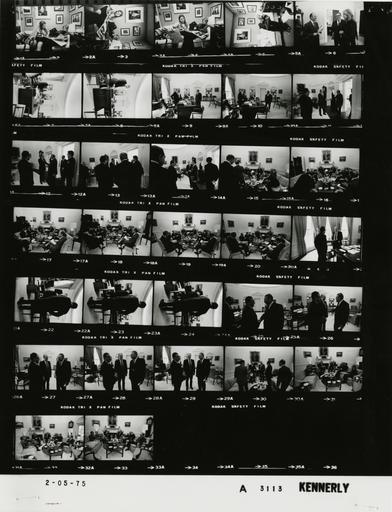 Keywords: Ford A3113 NLGRF photo contact sheet (1975-02-05)(Gerald Ford Library).jpg White House Photographic Office WHPO is housed at the Gerald R Ford Presidential Library a branch of the National Archives and Records Administration NARA <br/><br/> This file is a 200 dpi photo contact sheet having images from roll of film A3113 of the August 9 1974 - January 20 1977 Gerald R Ford White House Photographic Office Series A0001-A9999 and B0001-B2886 photographs <br/><br/> The date on the photo contact sheet is the date the roll of film was processed not necessarily the date the photographs were taken See table below for additional details 1975-02-05 Gerald R Ford Presidential Library Image http //www fordlibrarymuseum gov/library/whphotos/A3113_NLGRF jpg A3113_NLGRF jpg from http //www fordlibrarymuseum gov/library/whphotos/19750205whpo pdf White House Photographs February 5 1975 of the http //www fordlibrarymuseum gov/Library/whphotos/whpo asp White House Photographic Collection page White House Photographic Office WHPO <br/> Creator David Hume Kennerly PD-USGov Institution Institution Gerald R Ford Presidential Library Table wikitable sortable + Photo contact sheet A3113 U S President Ford Administration Gerald R Ford Library Frame s Tone Subject proper Subject generic Names Geographic Location Photographer Date - 2-5 BW American Actress and Photographer seated; looking at photographs; all not in every frame Candice Bergen Eisert White House Photo Office Kennerly 1975-02-05 - 6 BW American Actress and Photographer standing talking Candice Bergen Kissinger Scowcroft Scheduling and Advance Office Kennerly 1975-02-05 - 7-8 BW standing at desk GRF Oval Office Kennerly 1975-02-05 - 9-10 BW standing talking near desk GRF Kissinger Oval Office Kennerly 1975-02-05 - 11-20 BW Meeting with the Prime Minister of Pakistan; Minister of State for Defense and Foreign Affairs Foreign Secretary Ambassador to the U S U S Ambassador to Pakistan greeting handshaking; moving around room near fireplace; various angles and distances; all not in every frame GRF Zulfikar Ali Bhutto Aziz Ahmed Agha Shahi Sahab Zada Yaqub-Khan Kissinger Henry Byroade Oval Office Kennerly 1975-02-05 - 21-24 BW Following Meeting with the Prime Minister of Pakistan standing talking near desk GRF Kissinger Oval Office Kennerly 1975-02-05 - 25-29 BW Chairman of the Jewish Agency for Israel and Chairman of the Fisher New Center Company Detroit Michigan greeting handshaking standing talking; various angles GRF Kissinger Max Fisher Oval Office Kennerly 1975-02-05 - 30-33 BW Chairman of the Jewish Agency for Israel and Chairman of the Fisher New Center Company Detroit Michigan standing talking seated near fireplace GRF Kissinger Max Fisher Rumsfeld Scowcroft Oval Office Kennerly 1975-02-05 Gerald R Ford Presidential Library and Museum-cooperation PD-USGov Contact sheets by the Ford White House February 1975 Photographs by David Hume Kennerly from 1975 |