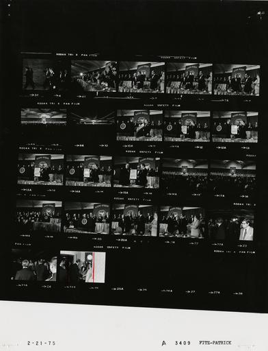 | Keywords: Ford A3409 NLGRF photo contact sheet (1975-02-21)(Gerald Ford Library).jpg White House Photographic Office WHPO is housed at the Gerald R Ford Presidential Library a branch of the National Archives and Records Administration NARA <br/><br/> This file is a 200 dpi photo contact sheet having images from roll of film A3409 of the August 9 1974 - January 20 1977 Gerald R Ford White House Photographic Office Series A0001-A9999 and B0001-B2886 photographs <br/><br/> The date on the photo contact sheet is the date the roll of film was processed not necessarily the date the photographs were taken See table below for additional details 1975-02-21 Gerald R Ford Presidential Library Image http //www fordlibrarymuseum gov/library/whphotos/A3409_NLGRF jpg A3409_NLGRF jpg from http //www fordlibrarymuseum gov/library/whphotos/19750221whpo pdf White House Photographs February 21 1975 of the http //www fordlibrarymuseum gov/Library/whphotos/whpo asp White House Photographic Collection page White House Photographic Office WHPO - Fitz-Patrick PD-USGov Institution Institution Gerald R Ford Presidential Library Table wikitable sortable + Photo contact sheet A3409 U S President Ford Administration Gerald R Ford Library Frame s Tone Subject proper Subject generic Names Geographic Location Photographer Date - 3A BW Reserve Officers Association of the U S Mid-Winter Banquet walking toward doorway; night shot; formal wear Reserve Officers Others Washington DC Outside Washington Hilton Hotel Fitz-Patrick 1975-02-21 - 4A-9A BW Reserve Officers Association of the U S Mid-Winter Banquet GRF walking on stage; others standing aplauding; formal wear GRF Reserve Officers Others Washington DC Washington Hilton Hotel Fitz-Patrick 1975-02-21 - 10A-15A BW Reserve Officers Association of the U S Mid-Winter Banquet GRF receiving framed award; standing posing; others in background standing applauding; formal wear GRF Reserve Officers Others Washington DC Washington Hilton Hotel Fitz-Patrick 1975-02-21 - 16A-17A BW Reserve Officers Association of the U S Mid-Winter Banquet GRF speaking at lectern; long shots from back of ballroom; formal wear GRF Reserve Officers Others Washington DC Washington Hilton Hotel Fitz-Patrick 1975-02-21 - 18A-21A BW Reserve Officers Association of the U S Mid-Winter Banquet on stage; all standing applauding; formal wear GRF Reserve Officers Others Washington DC Washington Hilton Hotel Fitz-Patrick 1975-02-21 - 22A-23A BW Following Reserve Officers Association of the U S Mid-Winter Banquet greeting handshaking mingling; all not in frame; formal wear GRF Reserve Officers Others Washington DC Washington Hilton Hotel Fitz-Patrick 1975-02-21 - 24A BW Following Reserve Officers Association of the U S Mid-Winter Banquet greeting handshaking; formal wear GRF Hotel Guests Washington DC Washington Hilton Hotel Fitz-Patrick 1975-02-21 Gerald R Ford Presidential Library and Museum-cooperation PD-USGov Contact sheets by the Ford White House February 1975 |